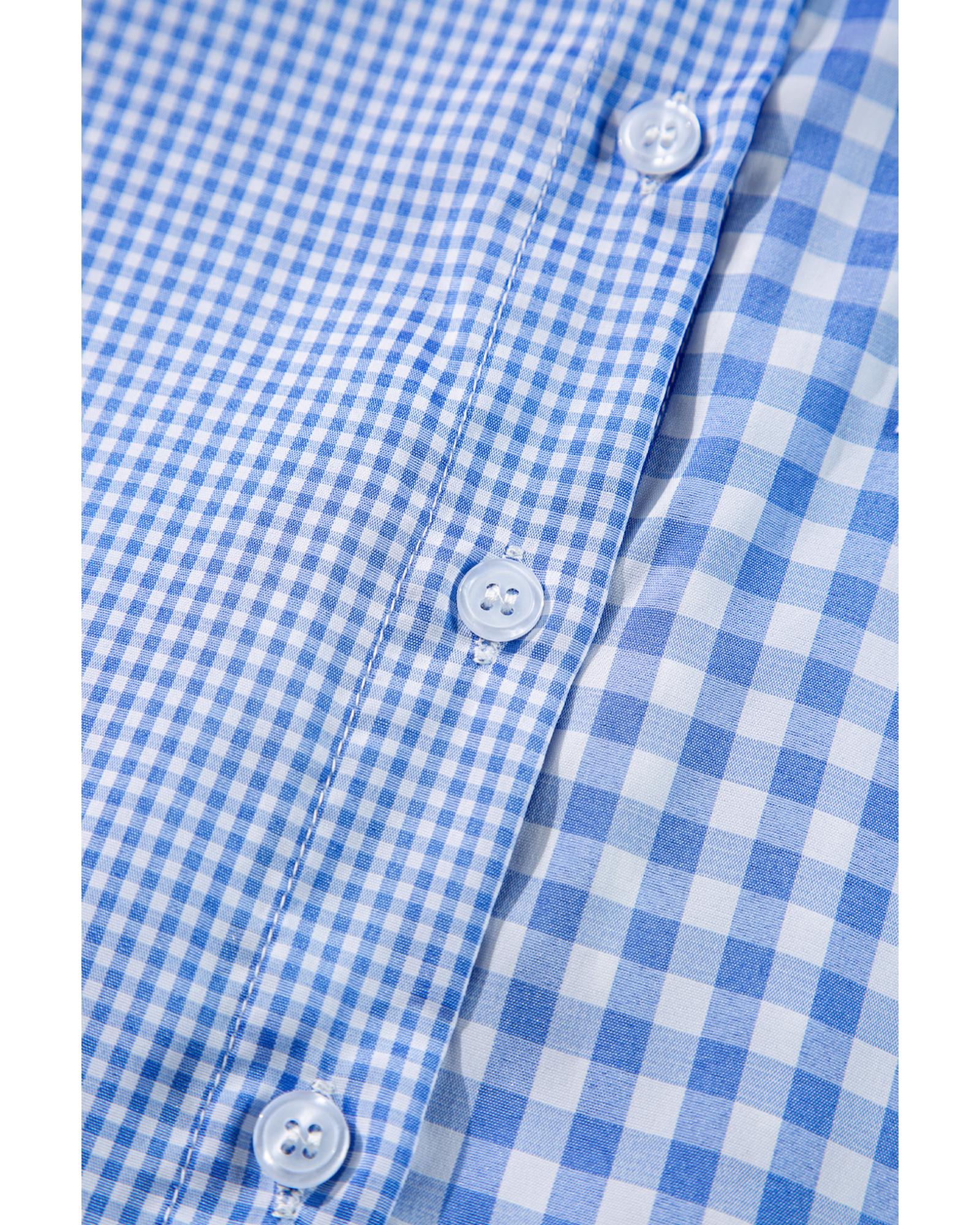 Sky Blue Stripe Plaid Patchwork Button up Long Sleeve Shirt – M