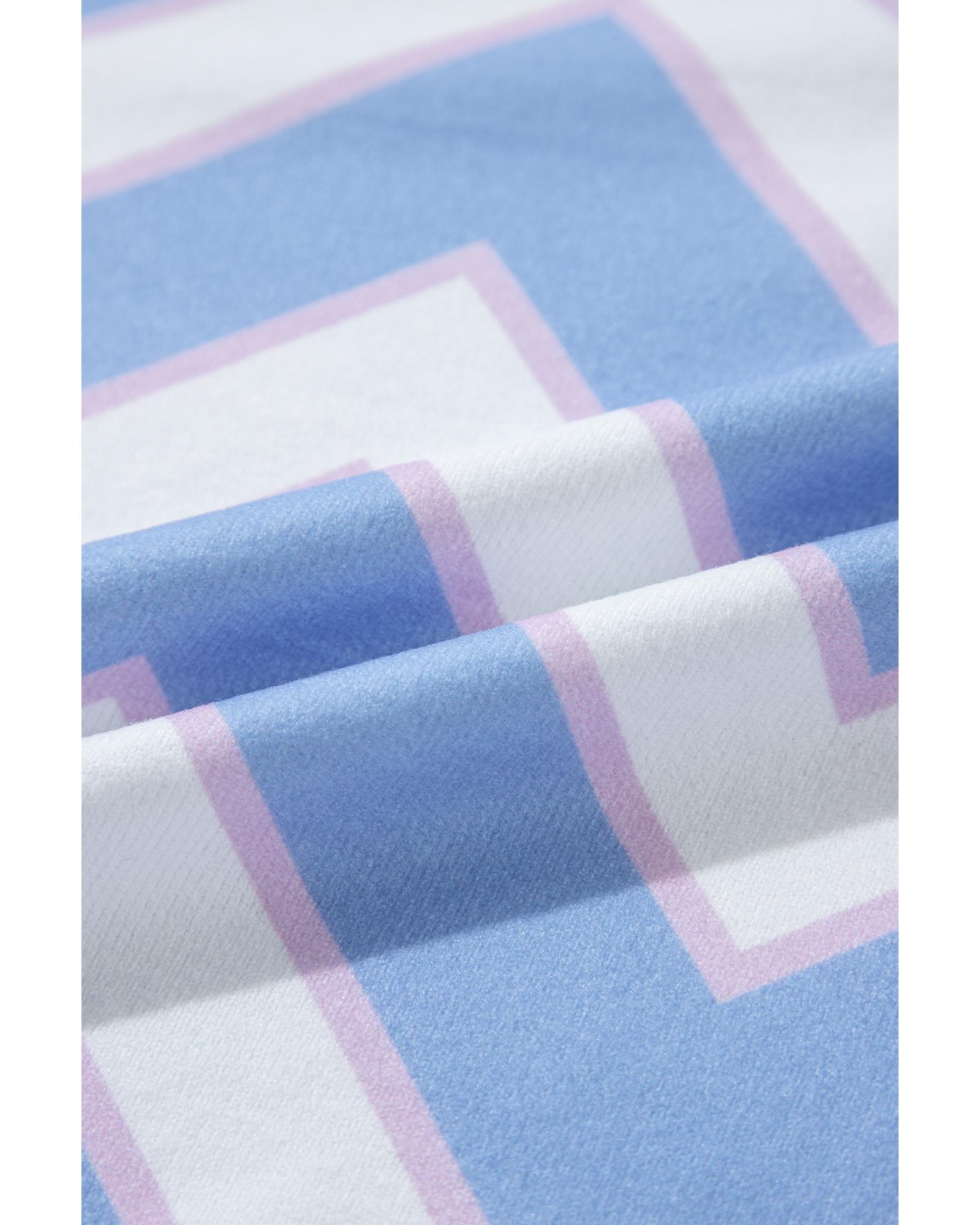 - Sky Blue Zigzag Striped Print V Neck Oversized Top