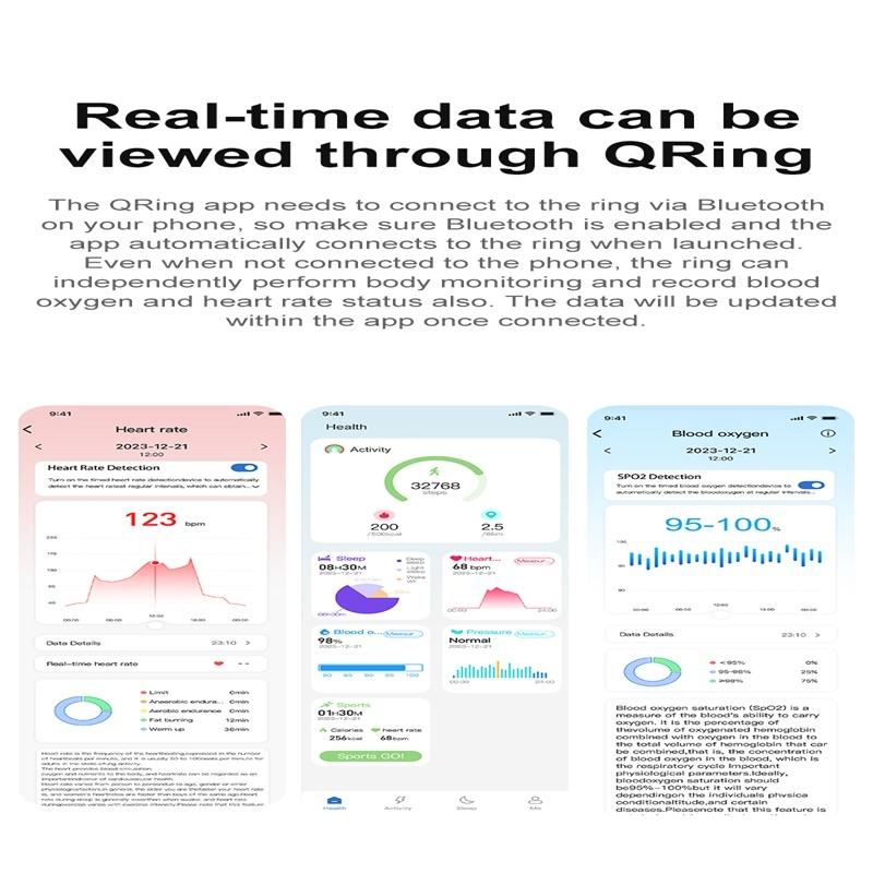• As with all wearable technology, the smart ring’s data may not be 100% accurate. Results may vary depending on individual usage and conditions.
