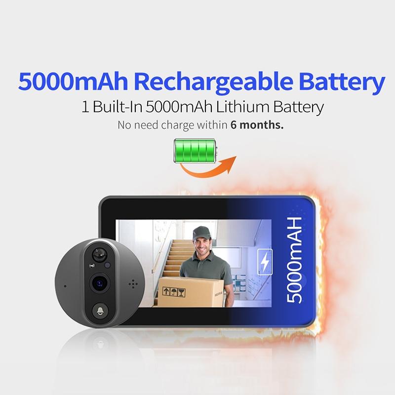 • 1 x 1080P 4.3 Inch Smart Wifi Digital Door Viewer Supports Wide-Angle Pir Night Vision Dingdong Photo White