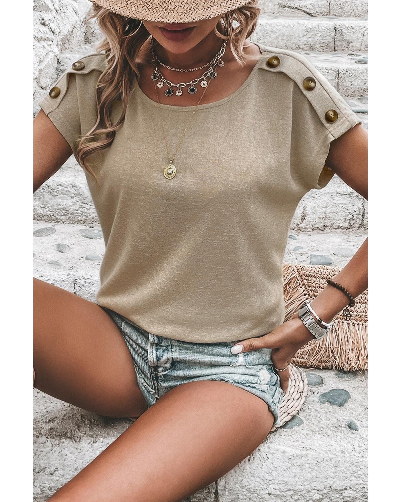 Smoke Gray Button Detail Batwing Sleeve Casual Tee – L