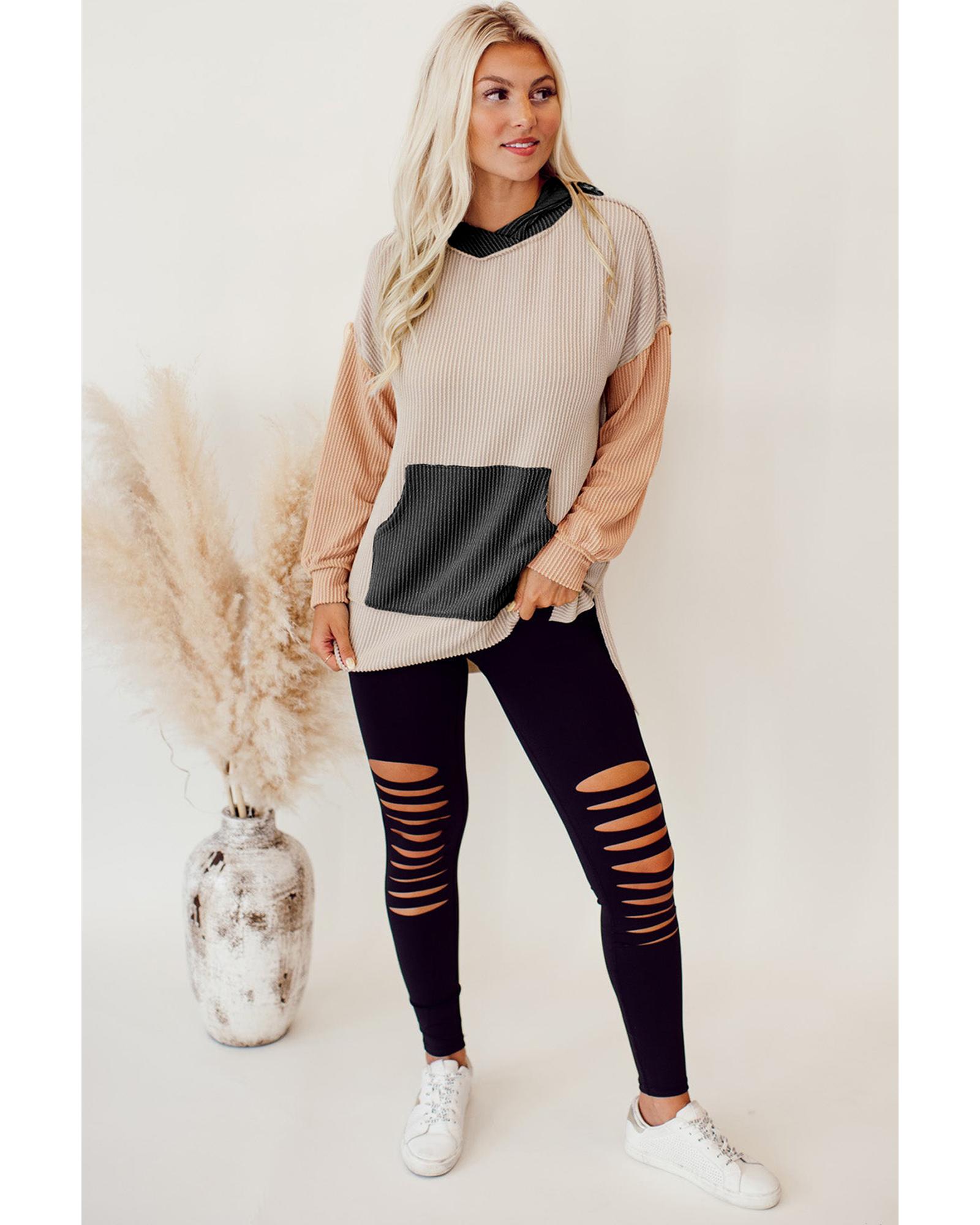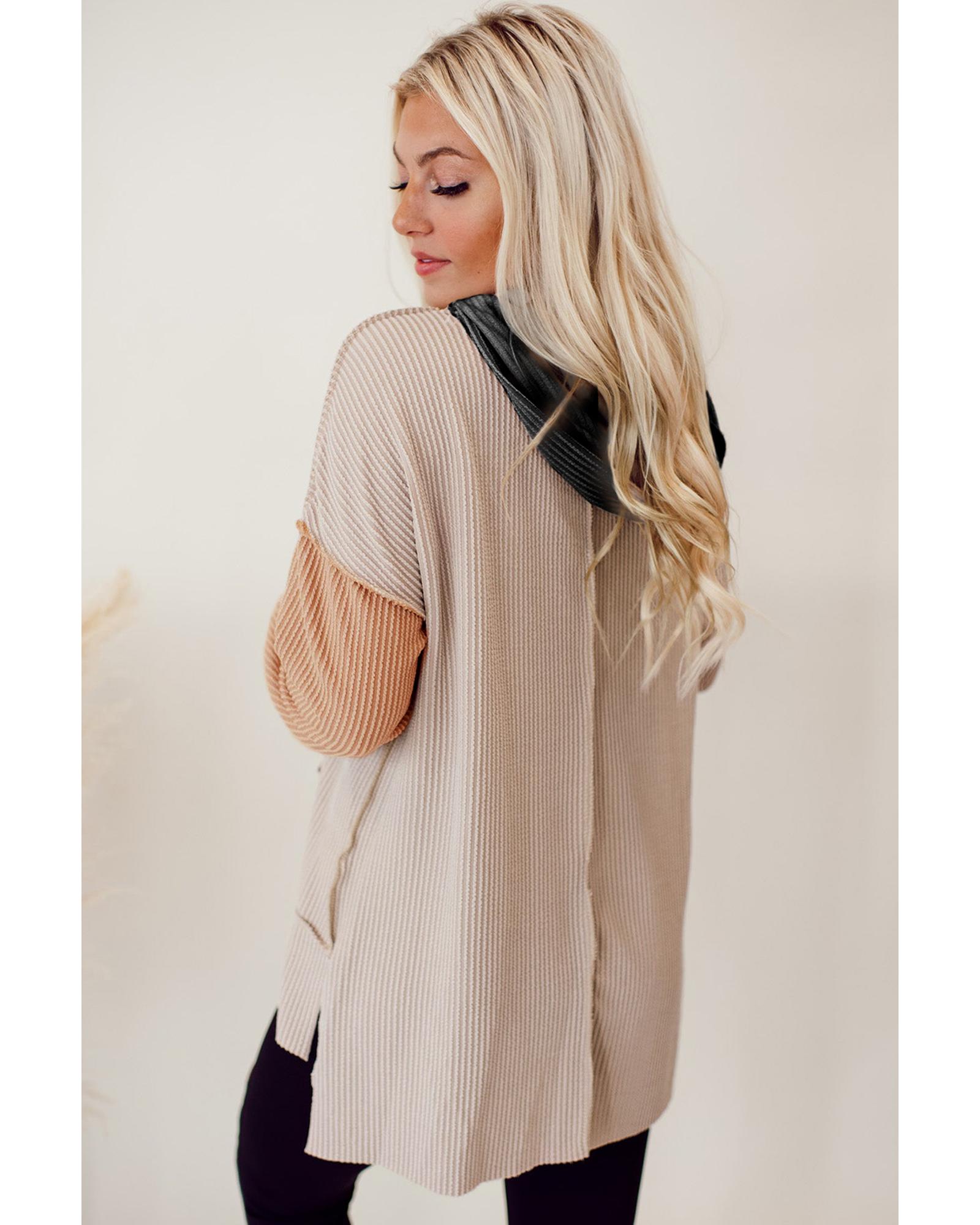 - Smoke Gray Color Block High Low Textured Hoodie