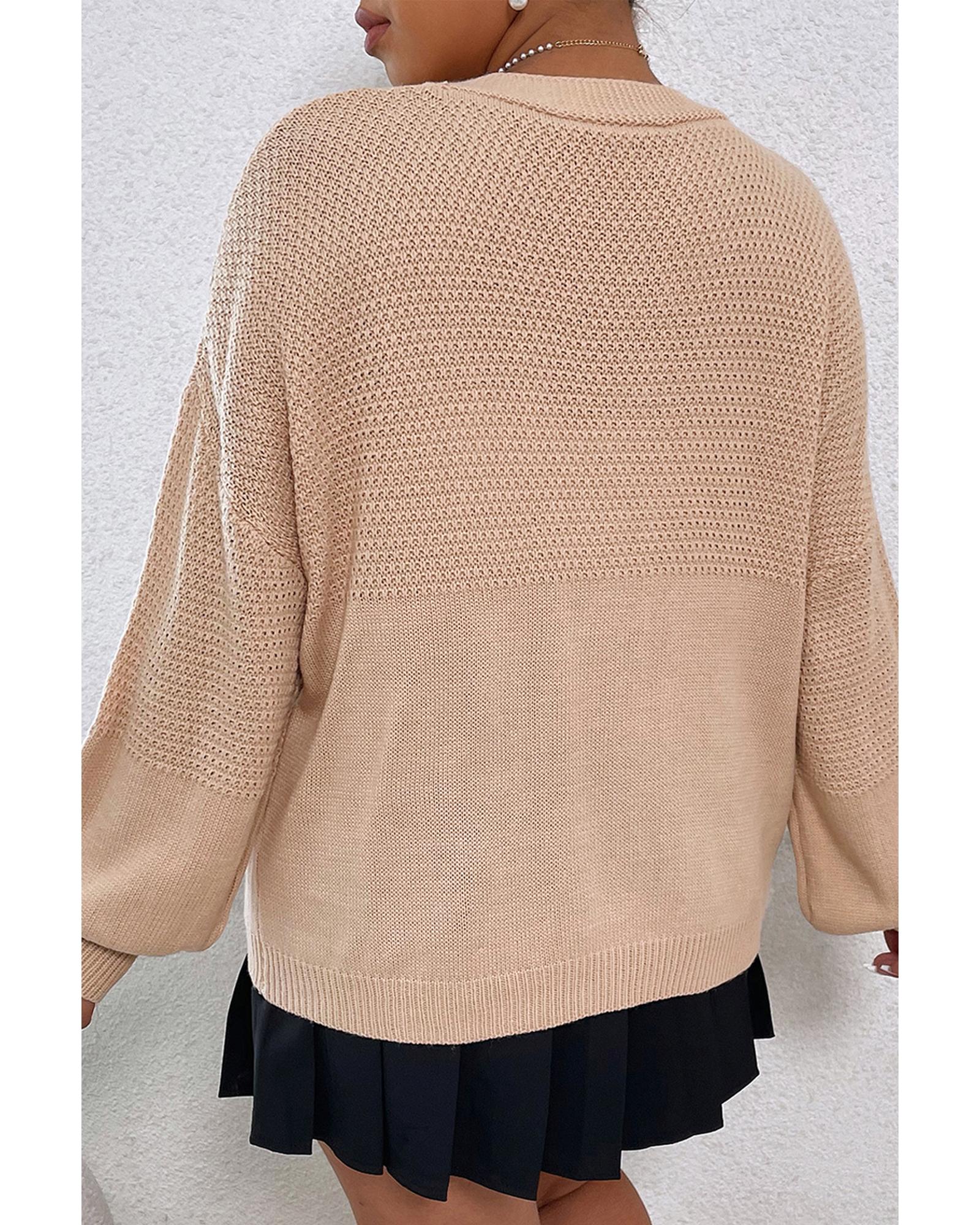 Pink Rhombus Pattern Knit Open Front Pocketed Cardigans - L