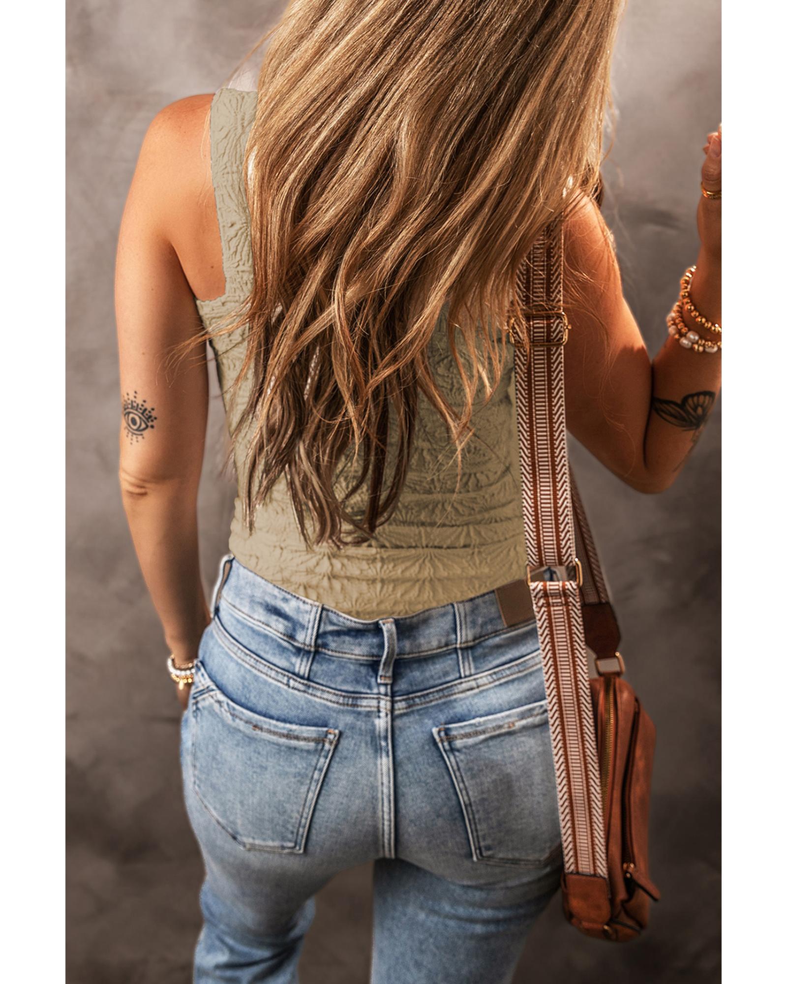 Smoke Gray Floral Jacquard Square Neck Tank Top – XL