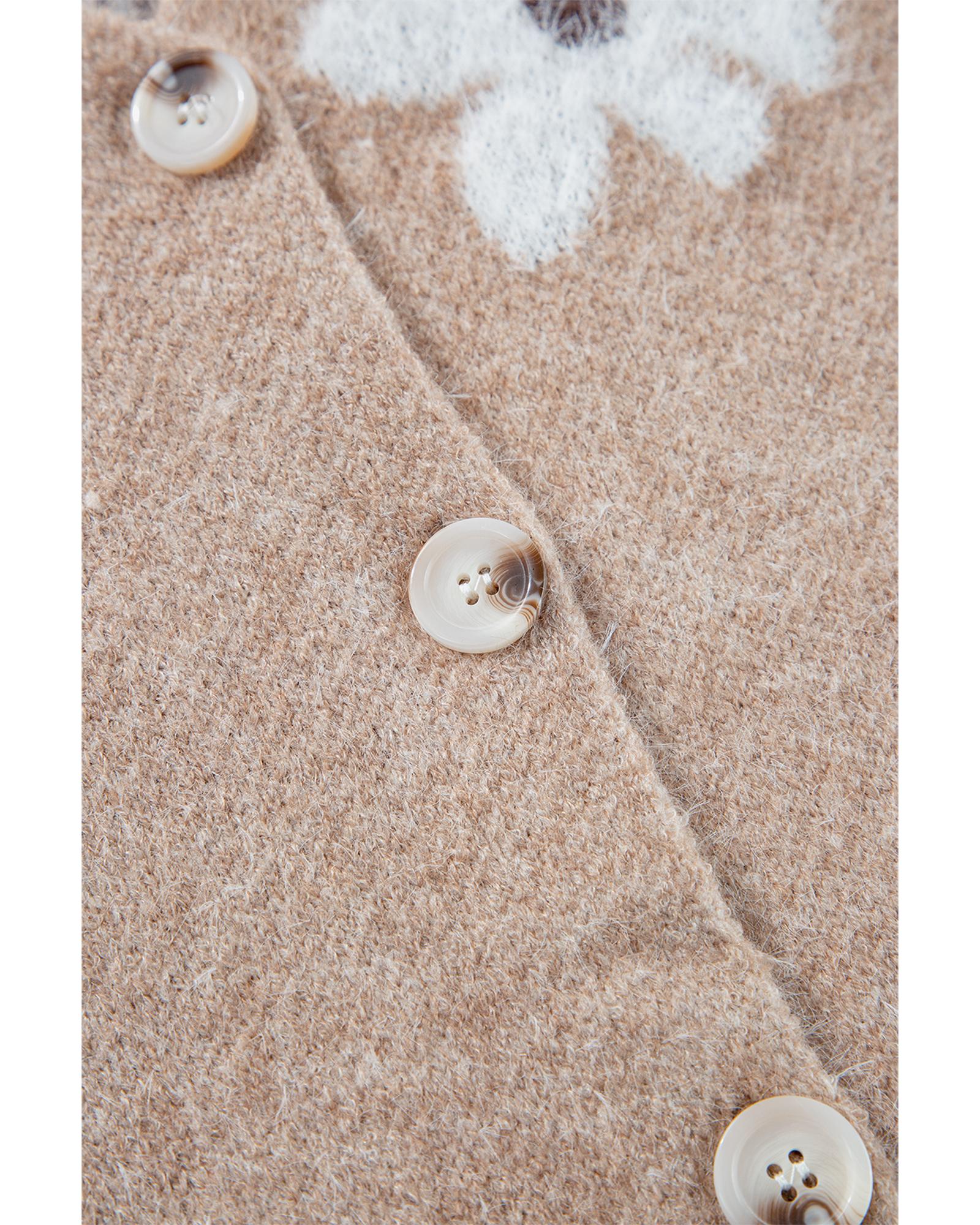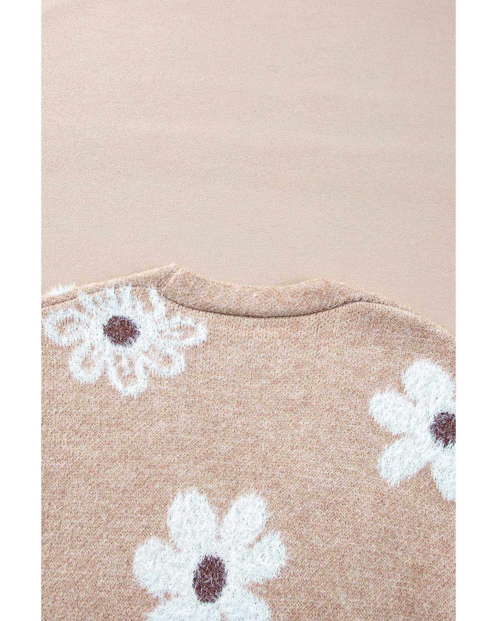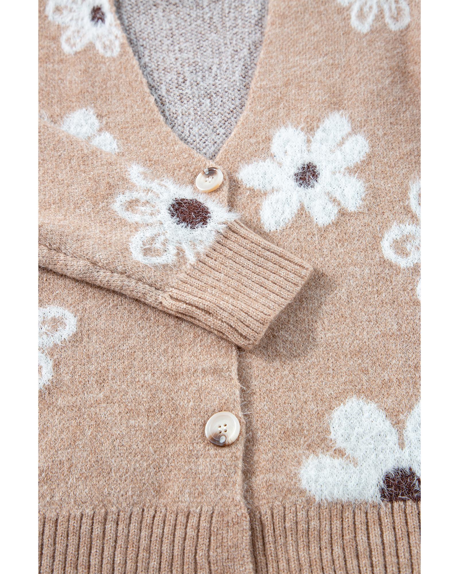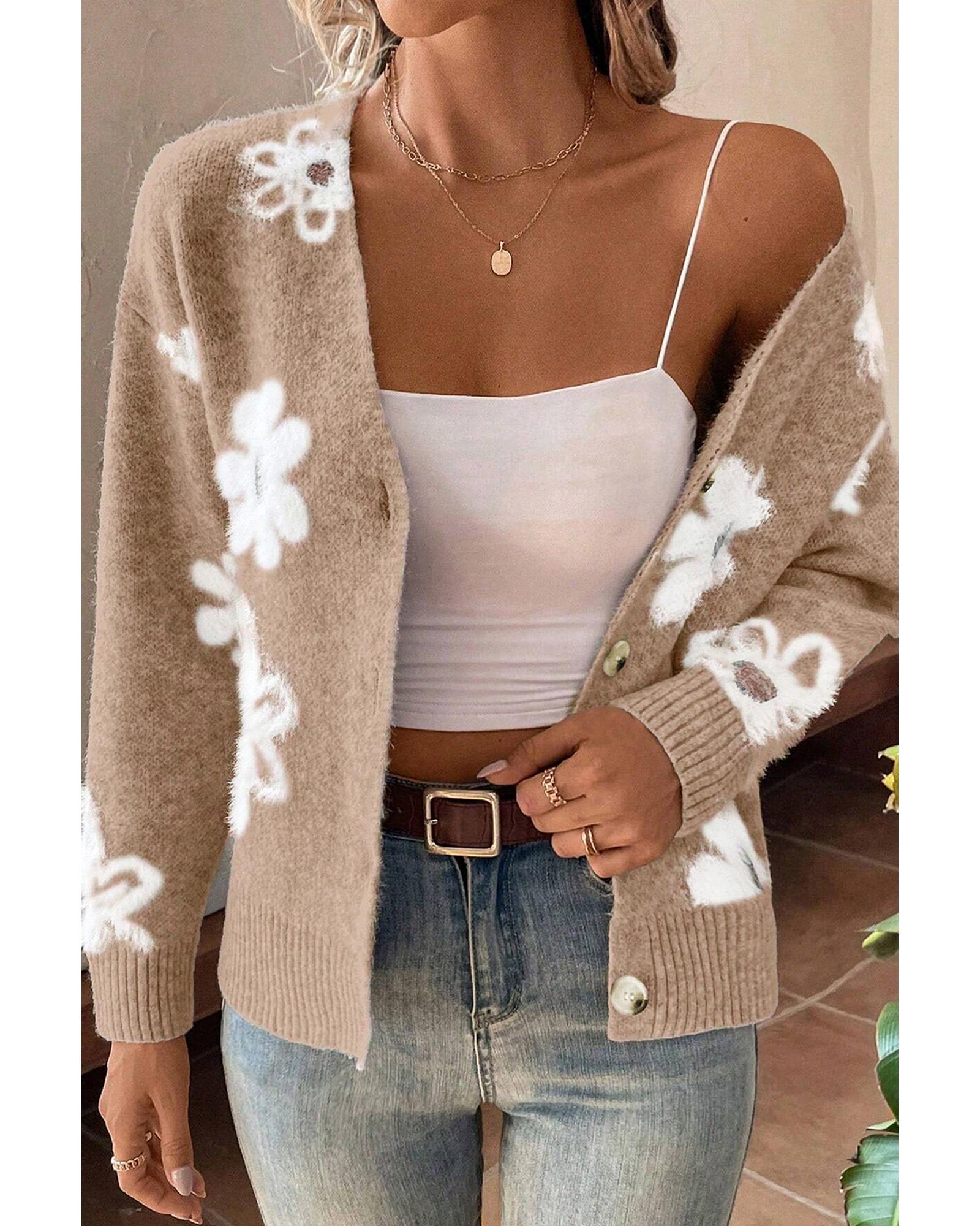 • Smoke Gray Floral Print V Neck Knitted Button up Cardigan