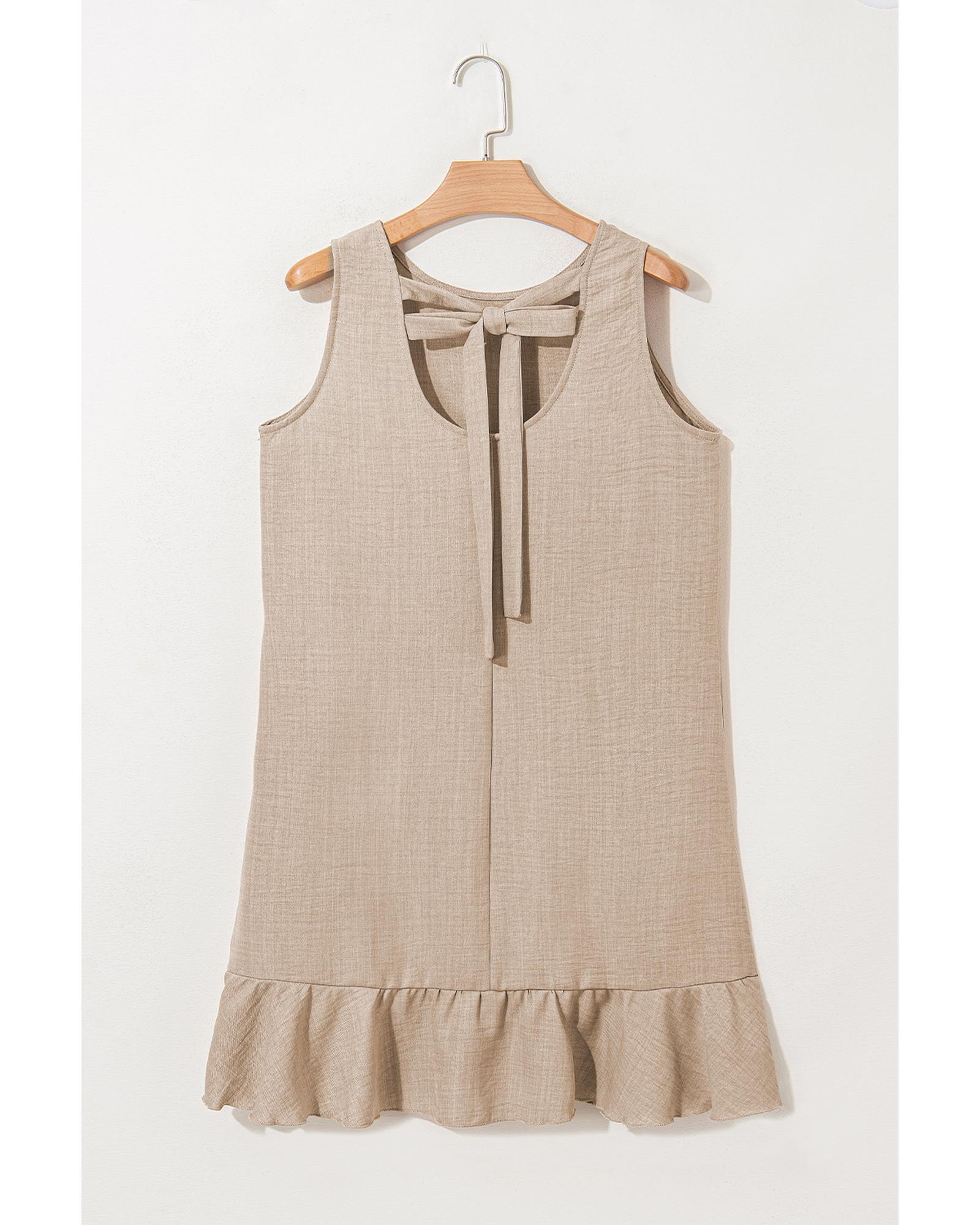 Smoke Gray Knot Scoop Back Ruffle Hem Sleeveless Mini Dress – L