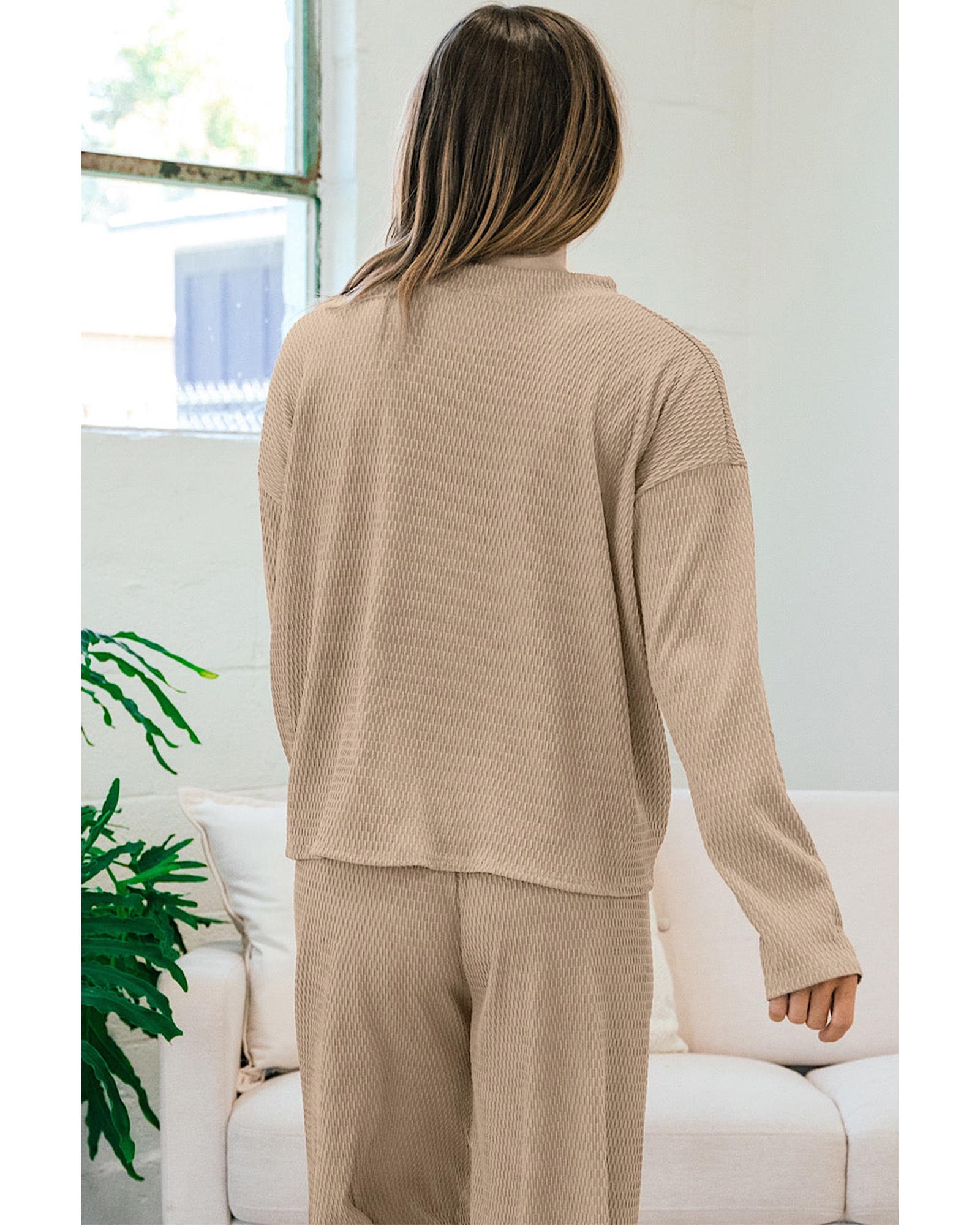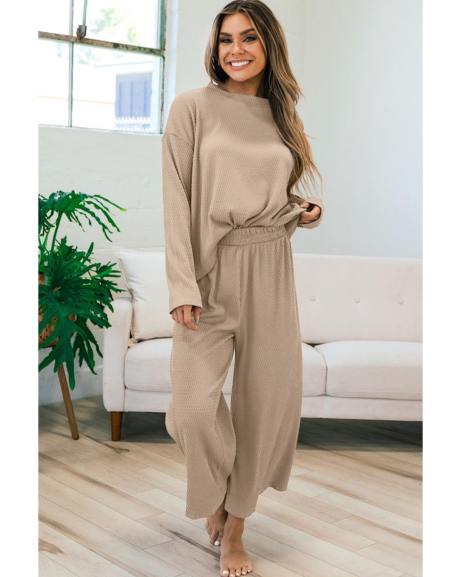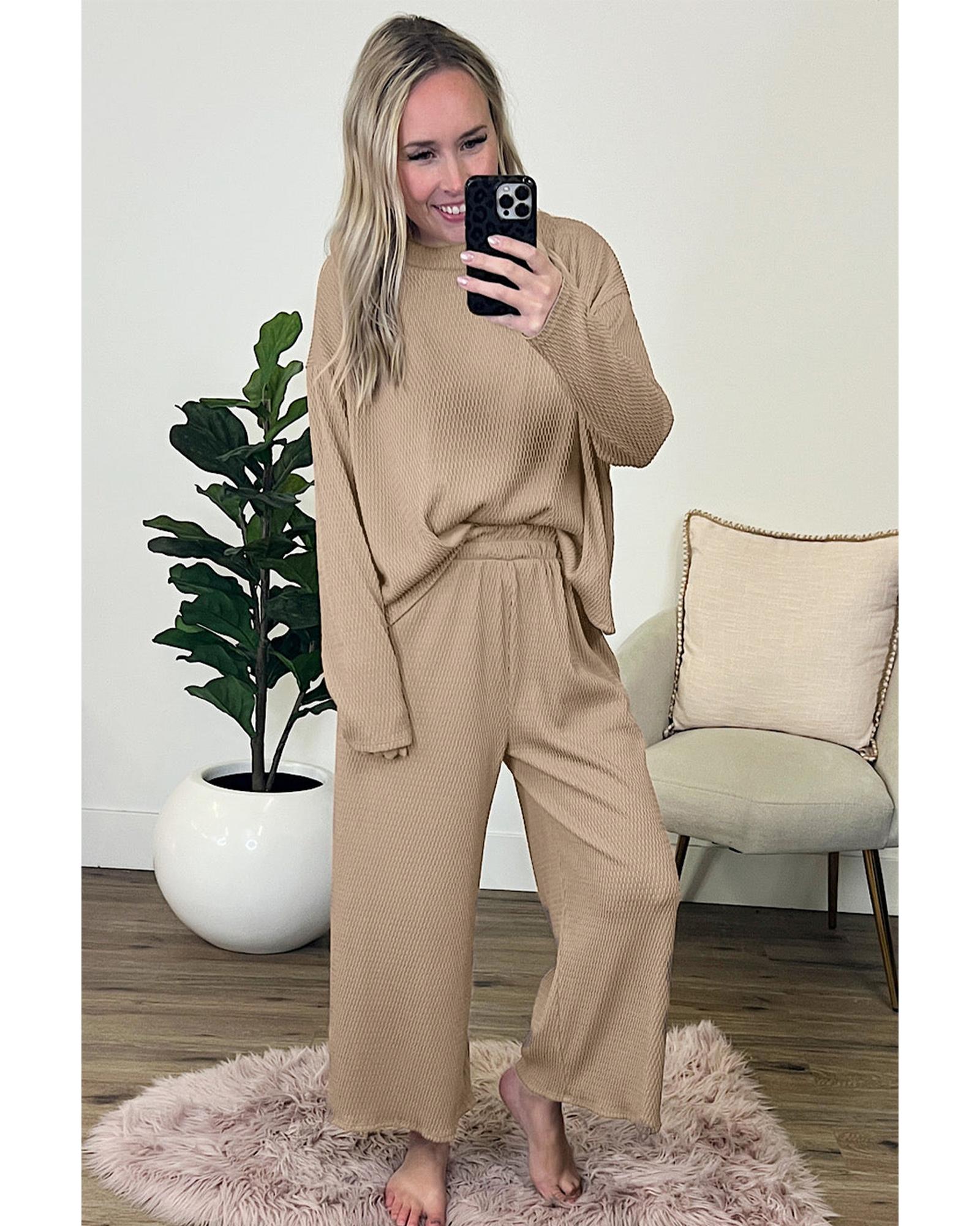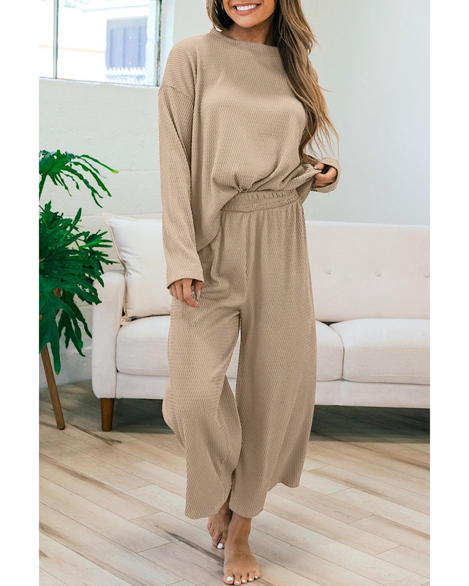 Smoke Gray Loose Textured Pullover and Pants Outfit – M