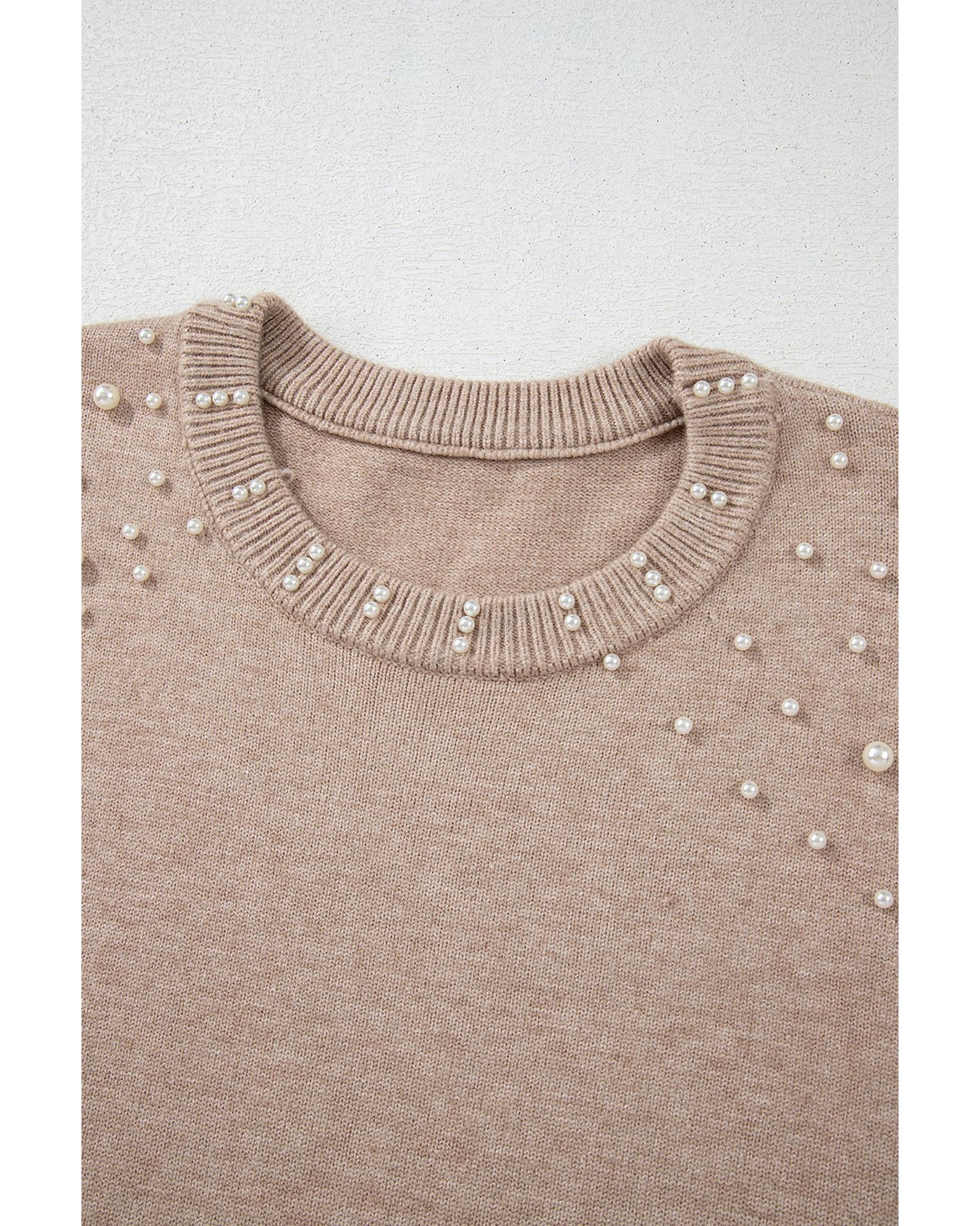 Smoke Gray Pearled Drop Shoulder Plus Size Sweater – 1X