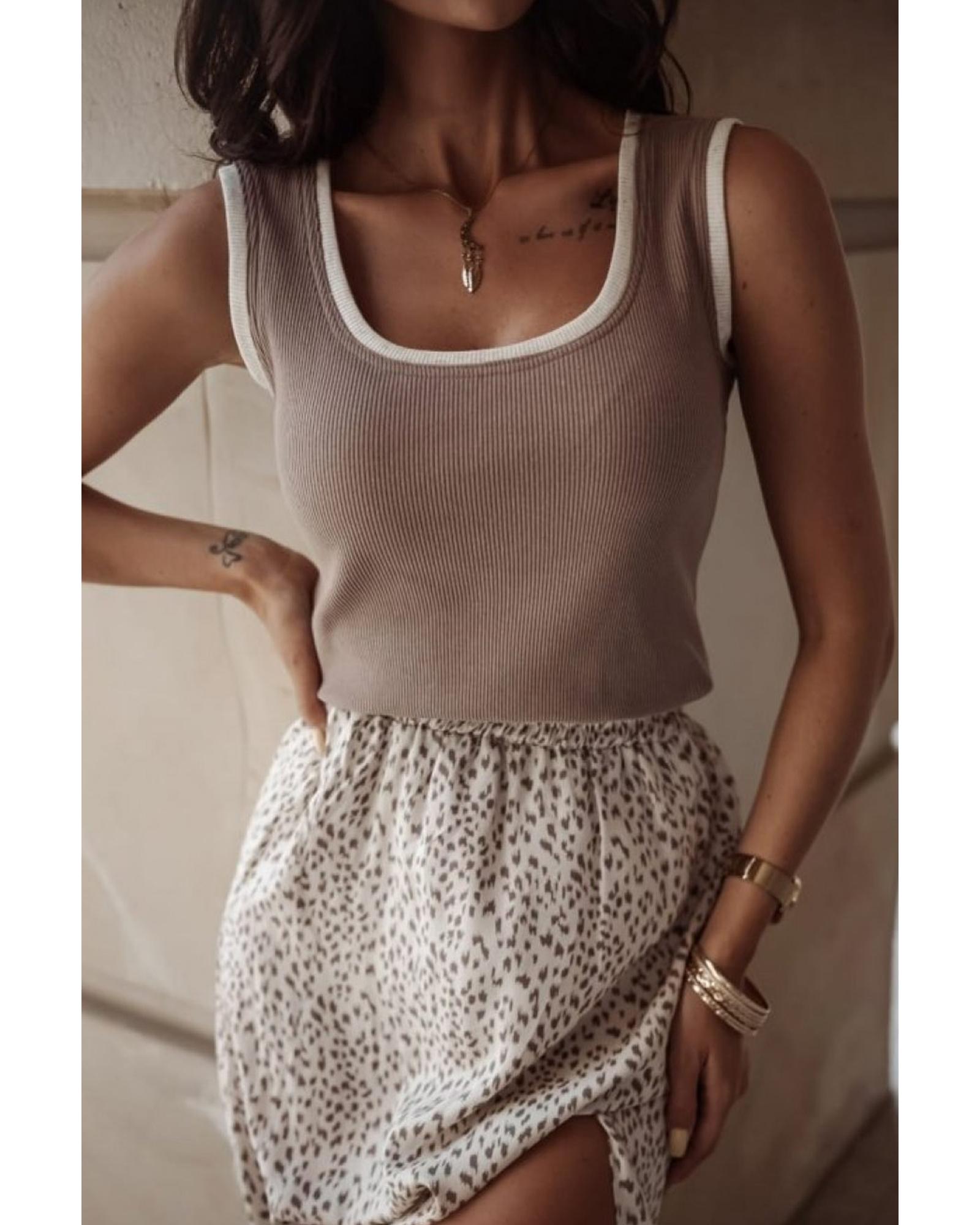 Smoke Gray Ribbed Knit Colorblock Edge U Neck Slim Fit Tank Top – XL