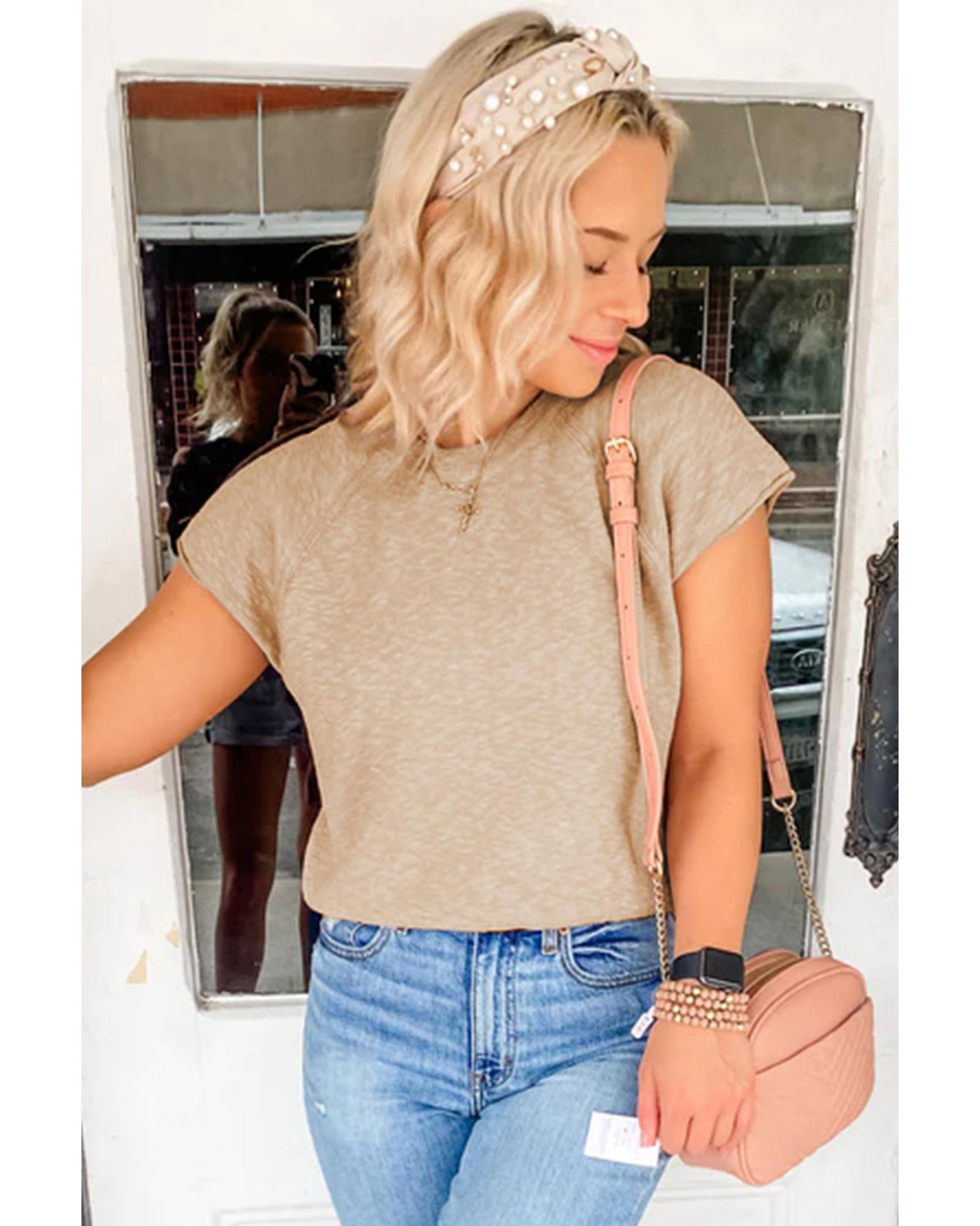 - Smoke Gray Ribbed Raglan Short Sleeve Sweater