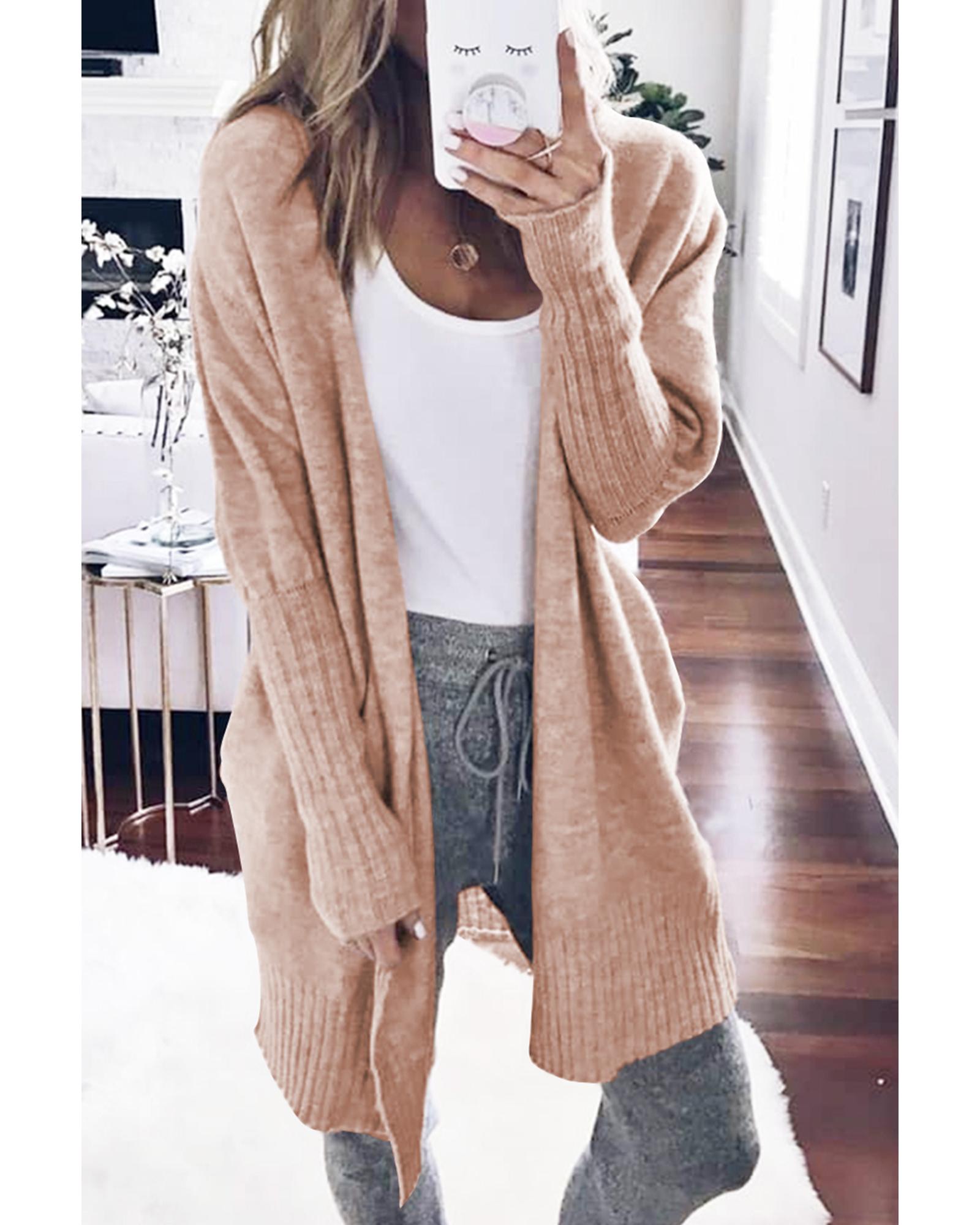 Smoke Gray Ribbed Trim Puff Sleeve Open Cardigan – L