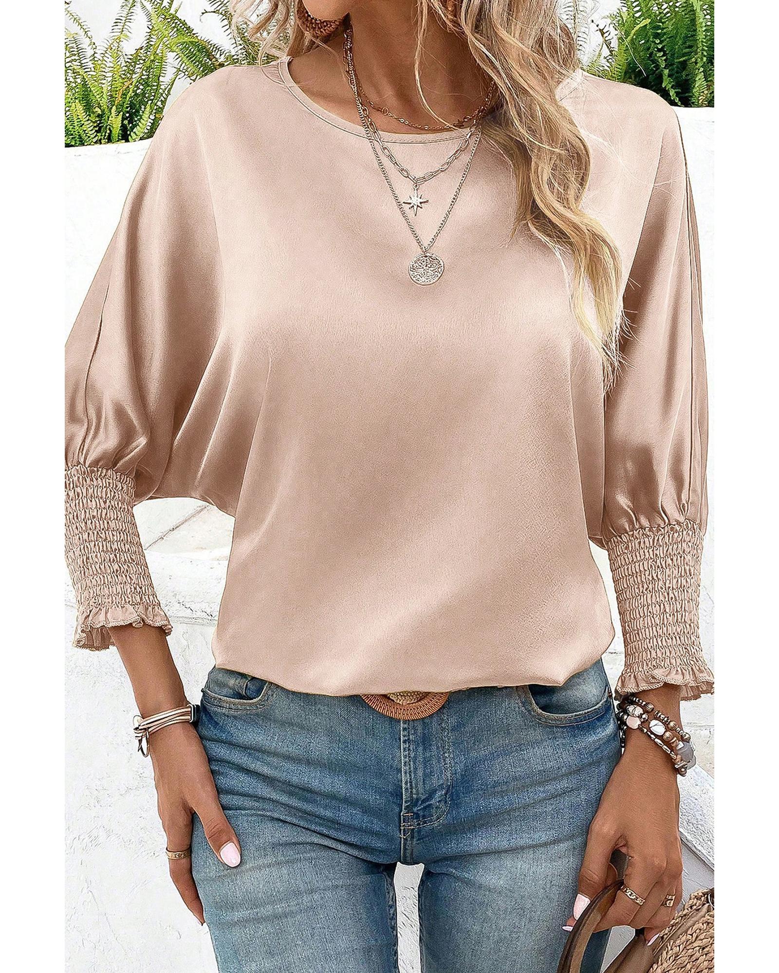 Smoke Gray Shirred Dolman Sleeve Satin Blouse – S