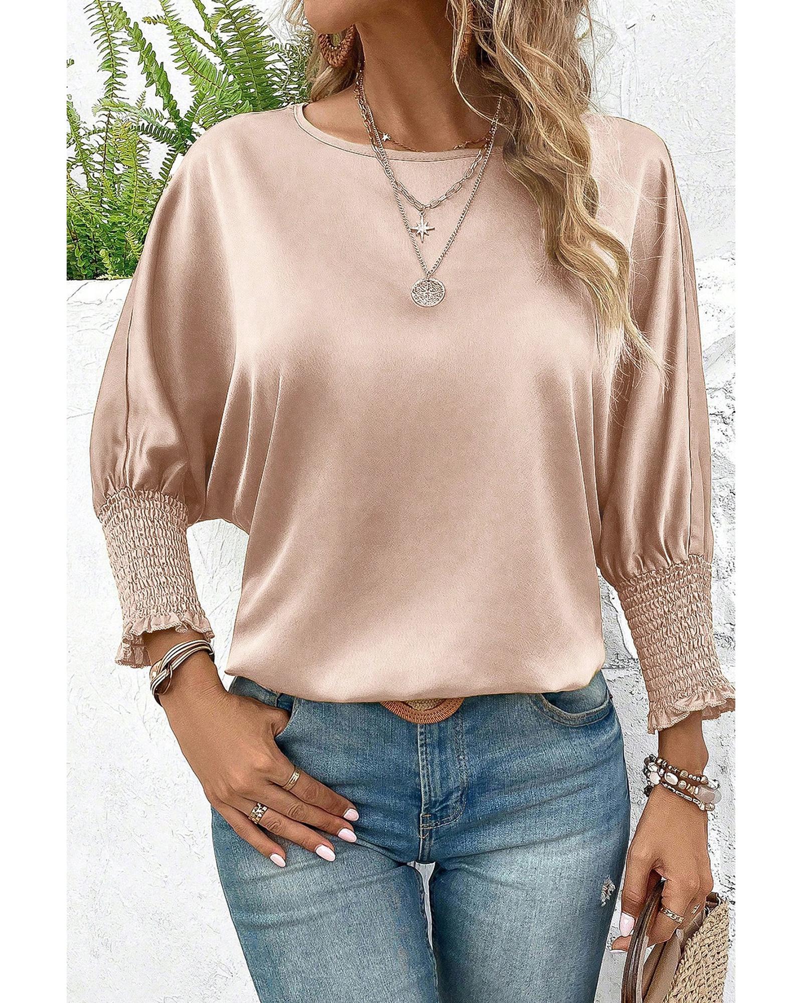 Smoke Gray Shirred Dolman Sleeve Satin Blouse – XL