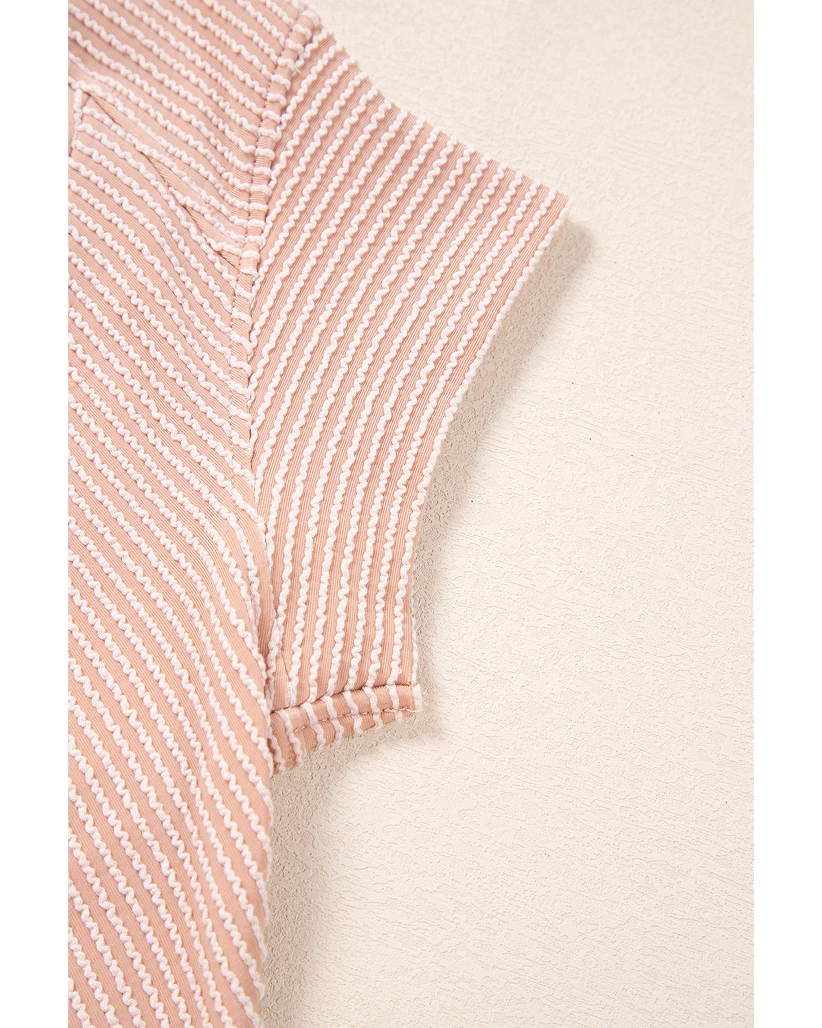 Pink Corded Colorblock Patchwork Short Sleeve Top and Loose Pants Set - M Original price was: $77.99.Current price is: $42.99.