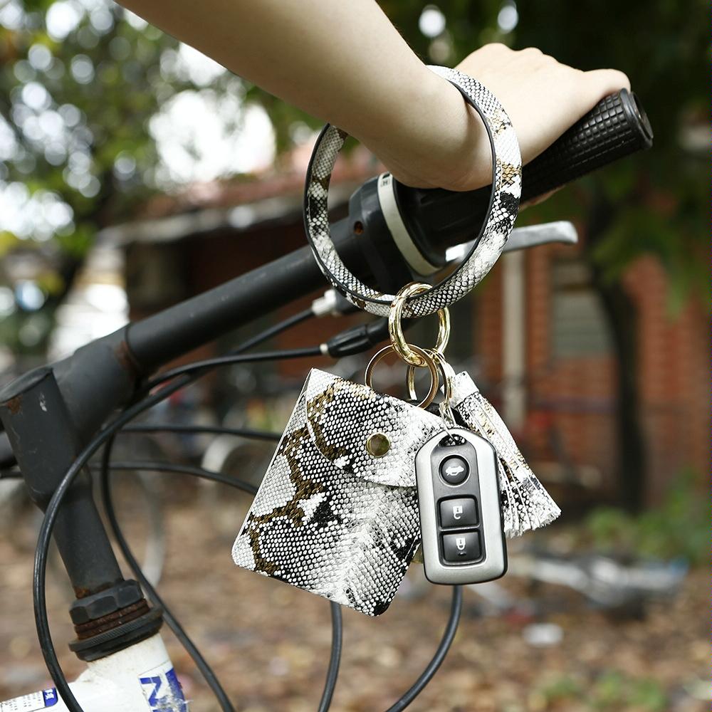 • 1 x Snake Print Wrist Keychain Coin Purse Black Pu Leather Bracelet Card Case
