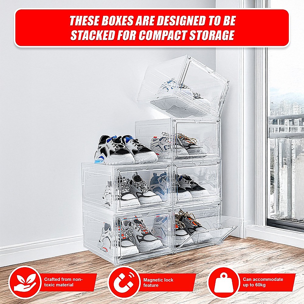 Sneaker Display Case Shoe Storage Organizer Box Stackable Plastic Clear Magnetic