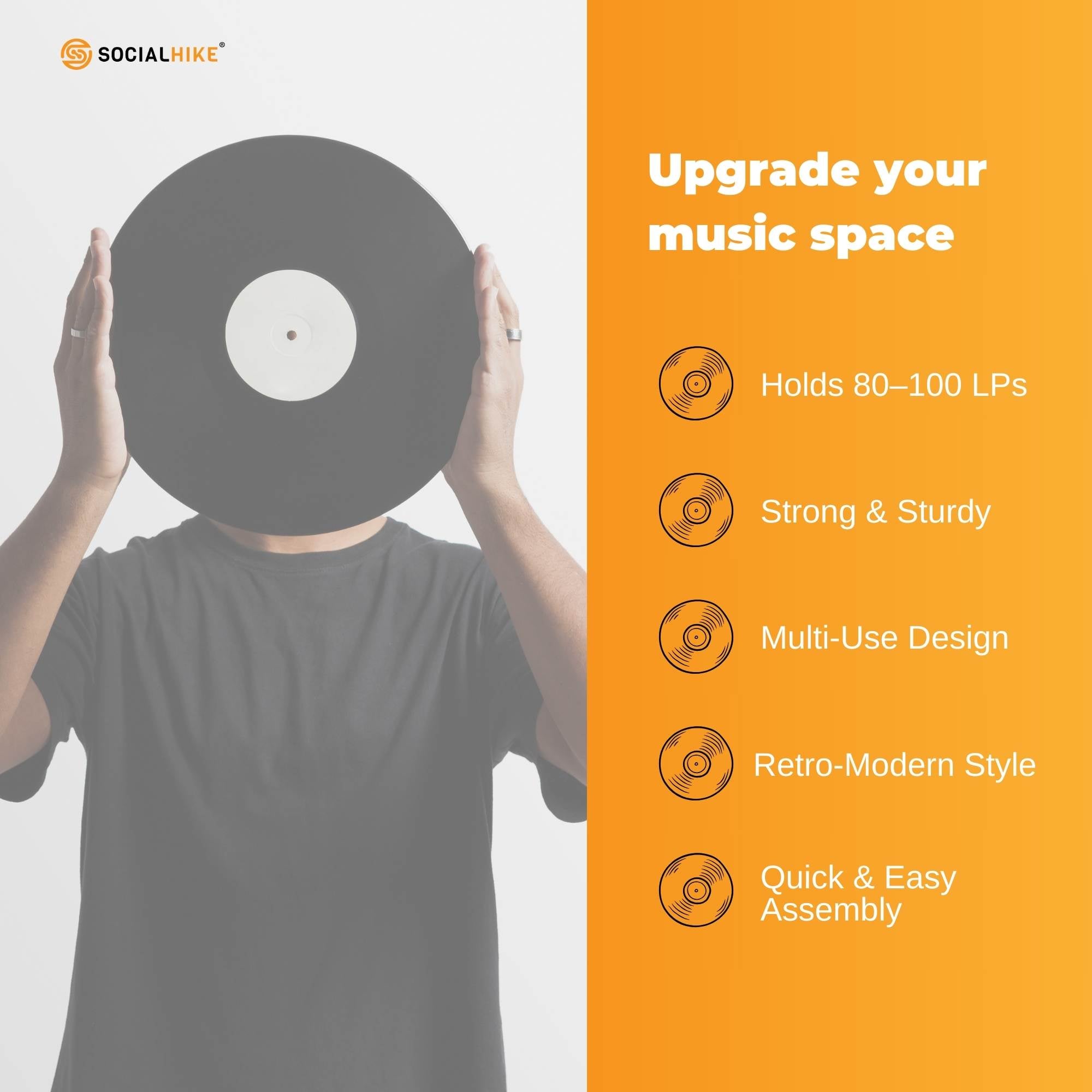 • Spacious Vinyl Storage – Holds up to 80–100 LPs, keeping your collection neatly organised with easy access.