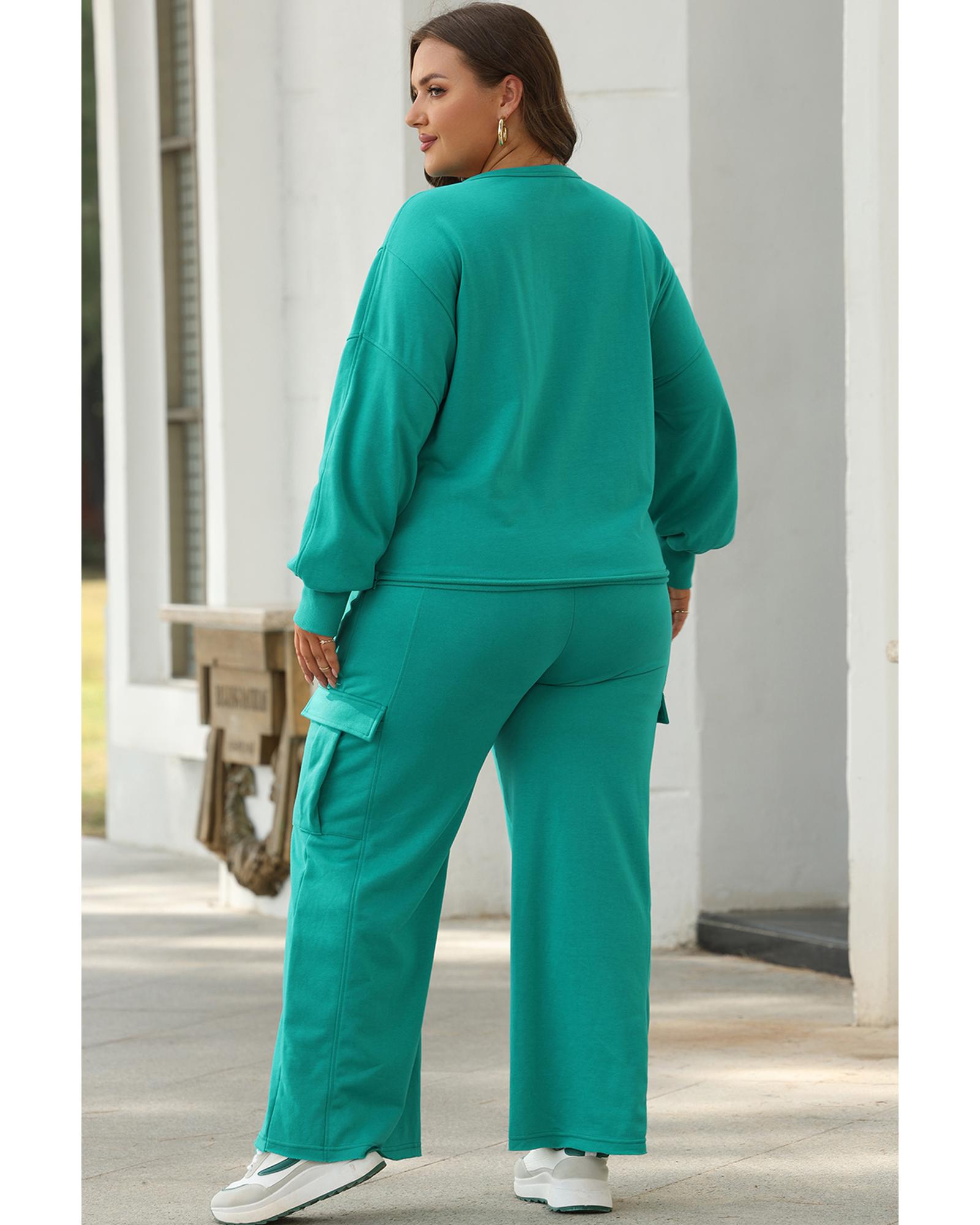 Solid Color Pullover Top and Cargo Pants Set – 2XL