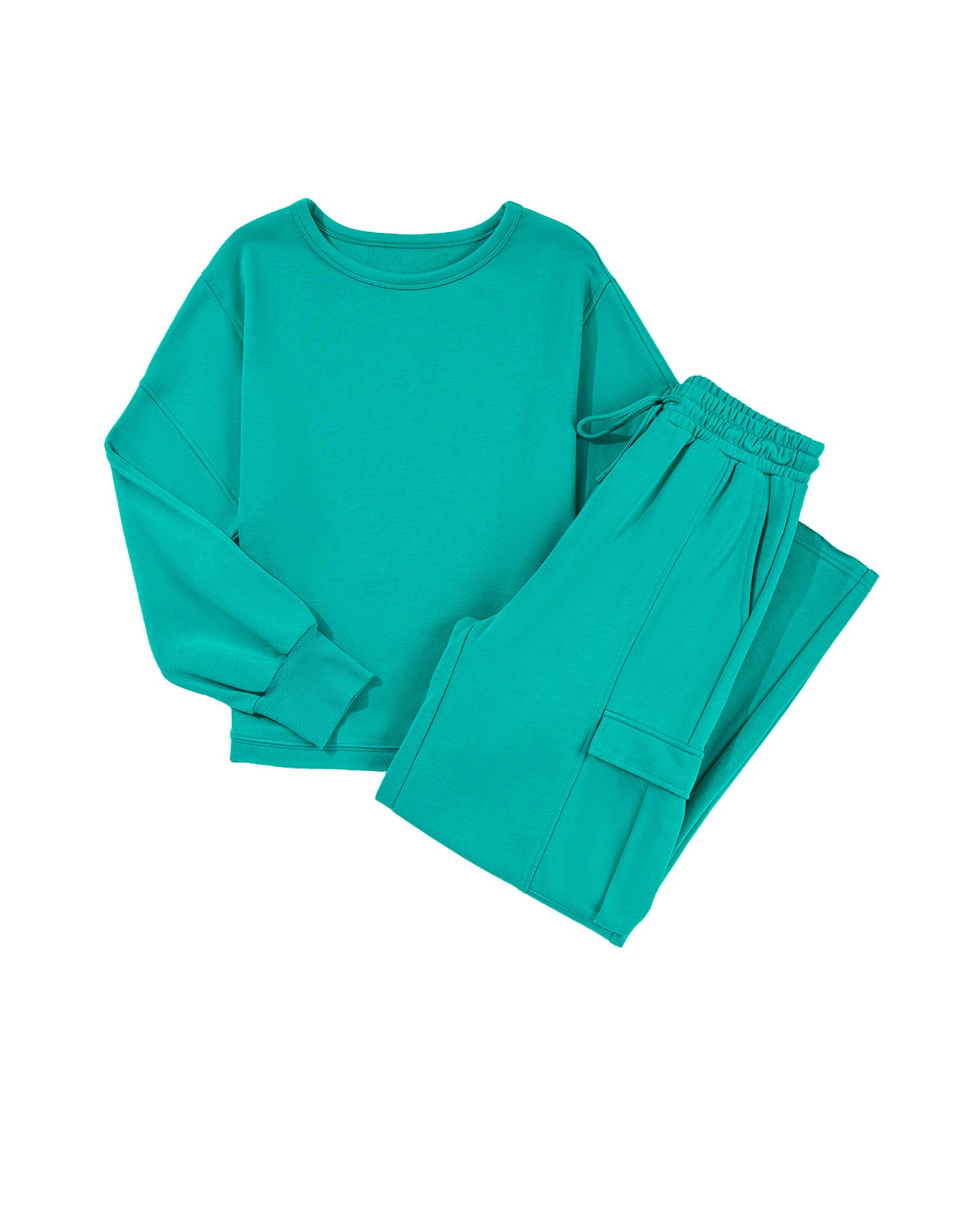 Solid Color Pullover Top and Cargo Pants Set – XL