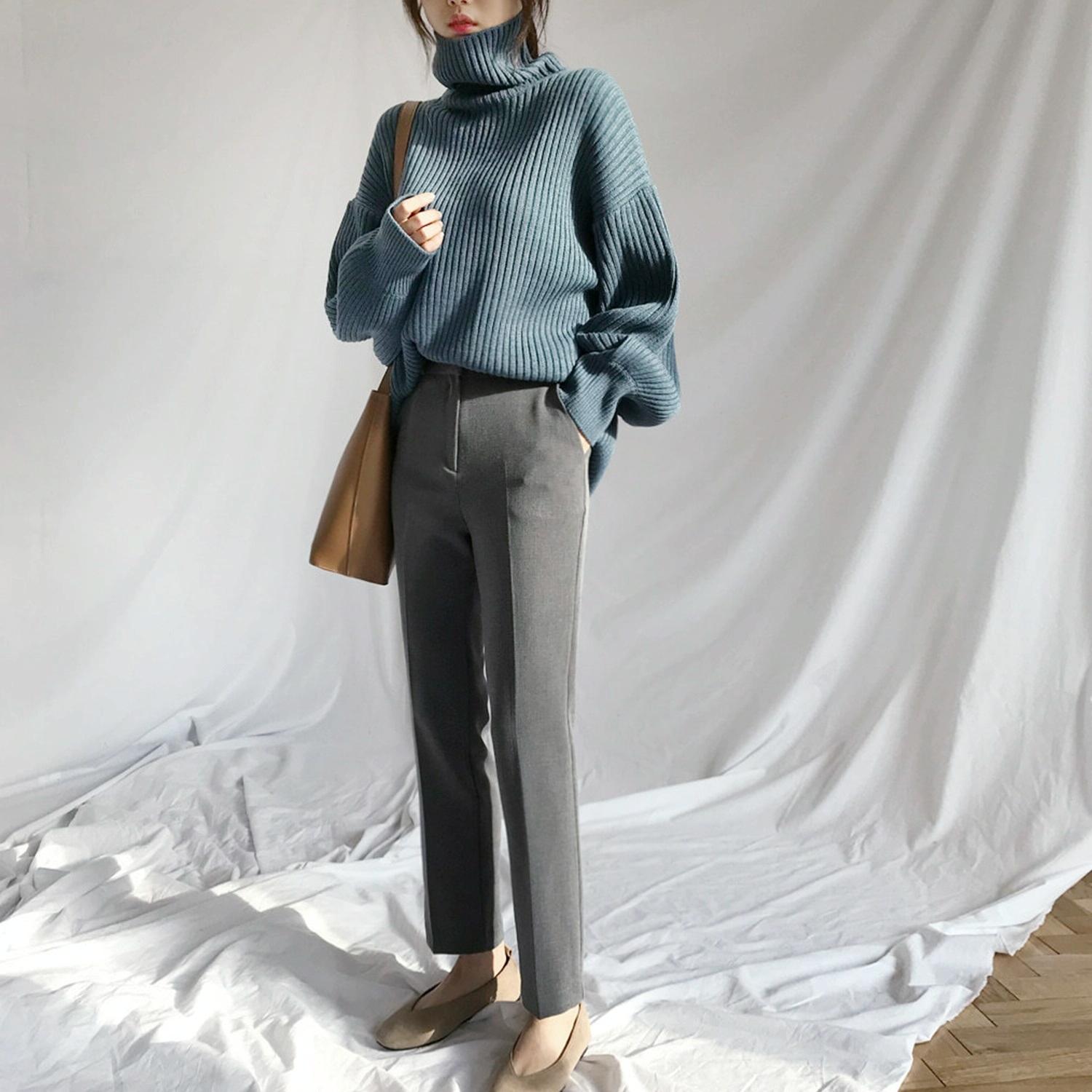 Solid Colour Turtleneck Outer Wear Pullover Casual Sweater Beige – Free Size – Beige Free Size