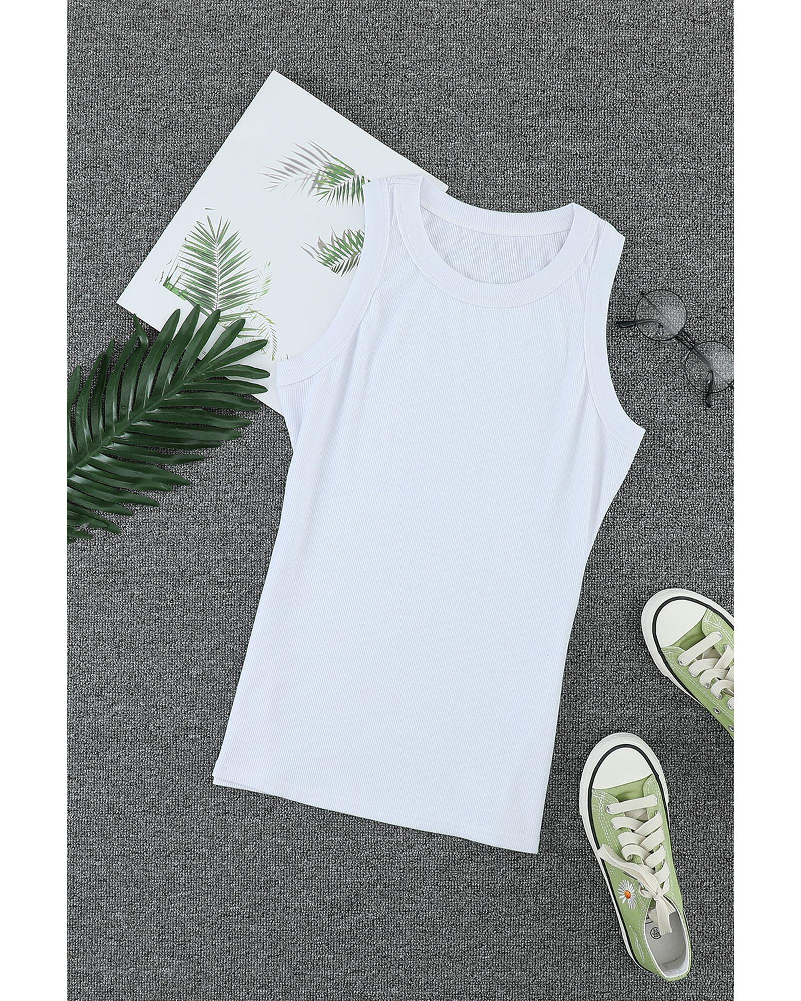 Solid White Round Neck Ribbed Tank Top – 2XL
