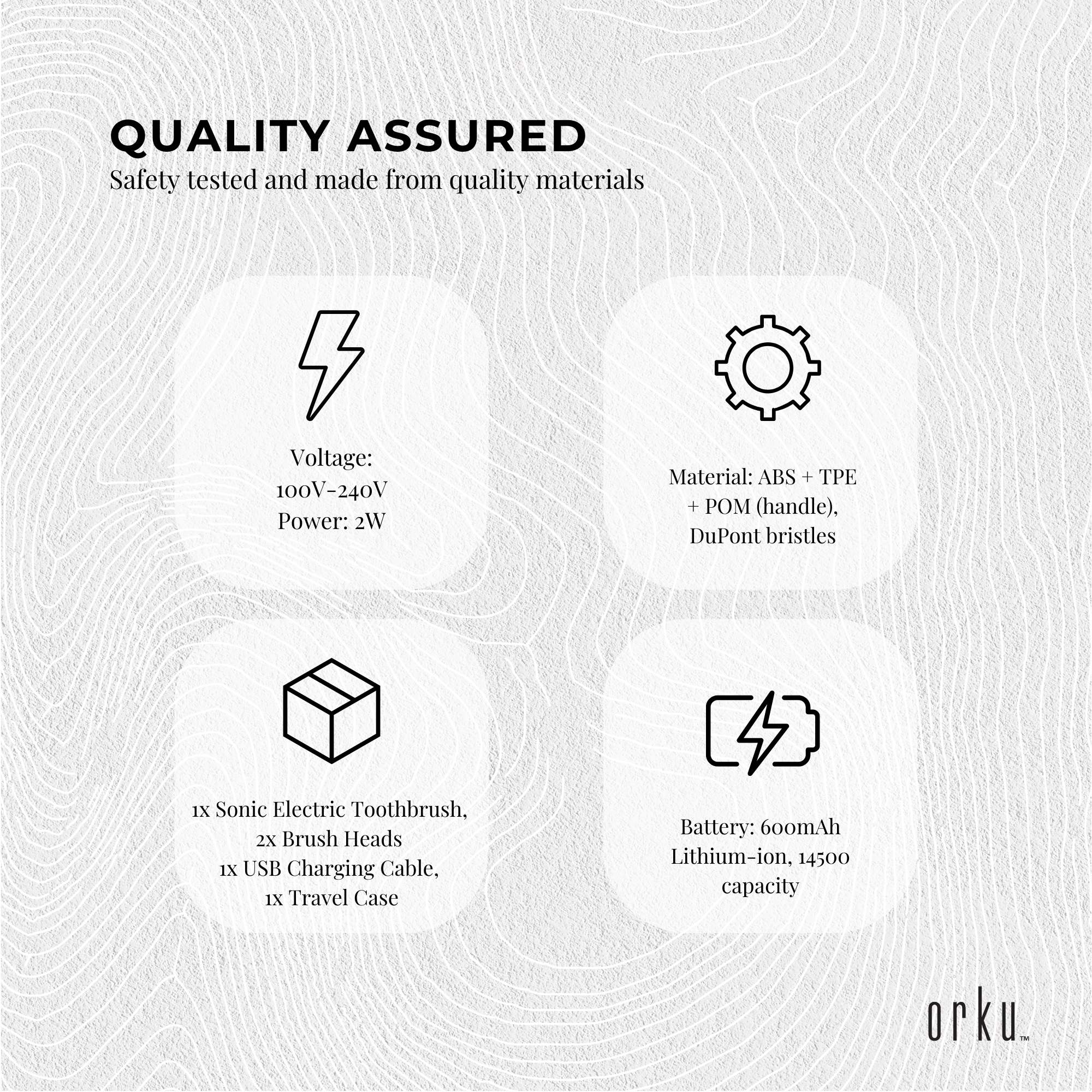 Charging within 4 hrs via USB and can last up to  60 days, this waterproof electric toothbrush offers 5 brushing modes for varying oral care needs and 100 % Du-Pont brush bristles.Â