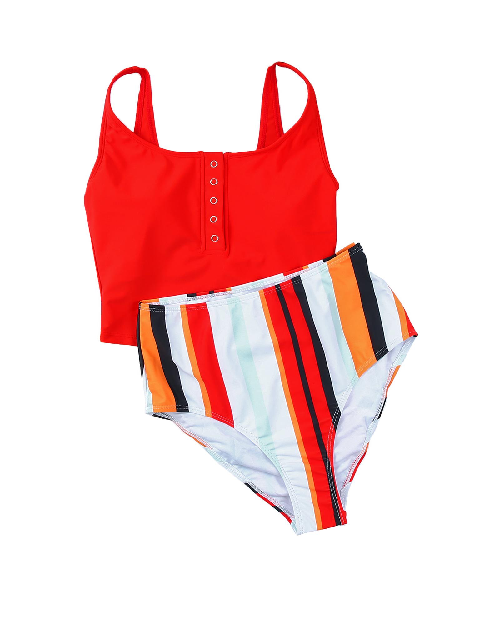 Square Neck Sleeveless Fashion Print Tankini Set – 2XL