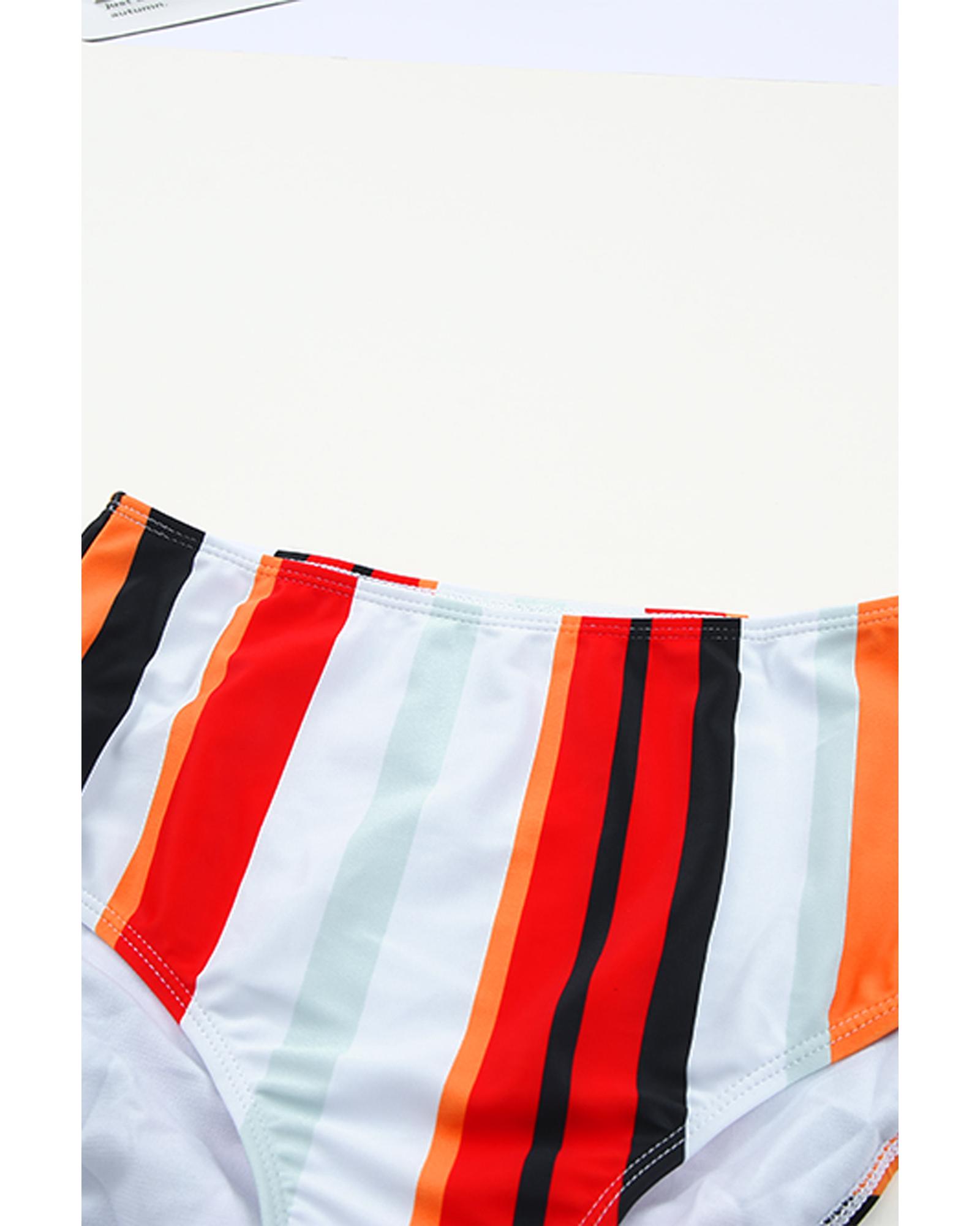 Multicolour Abstract Print Textured Spaghetti Strap High Waist Bikini Set - L