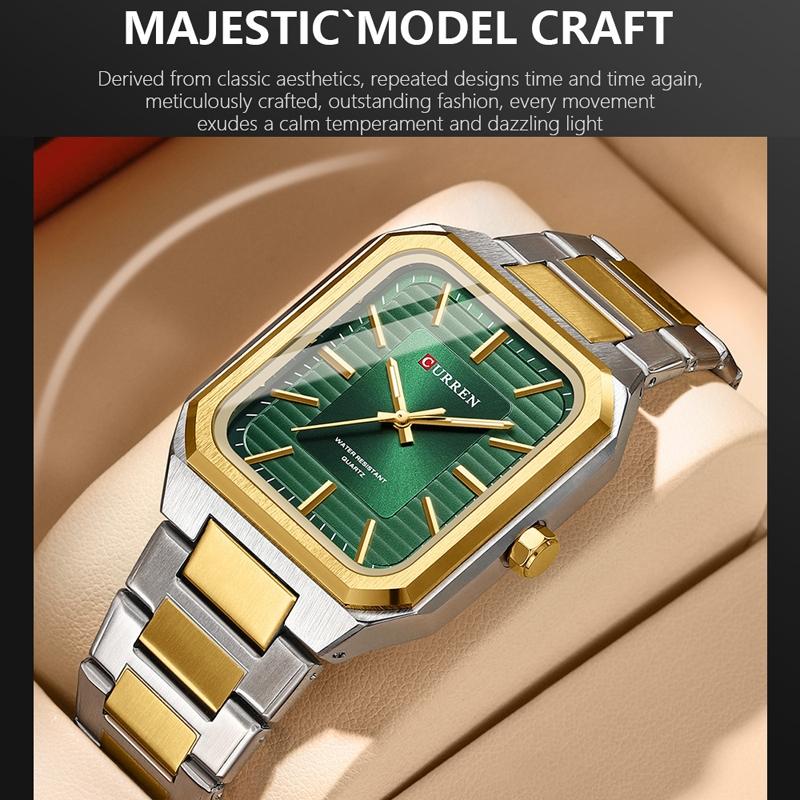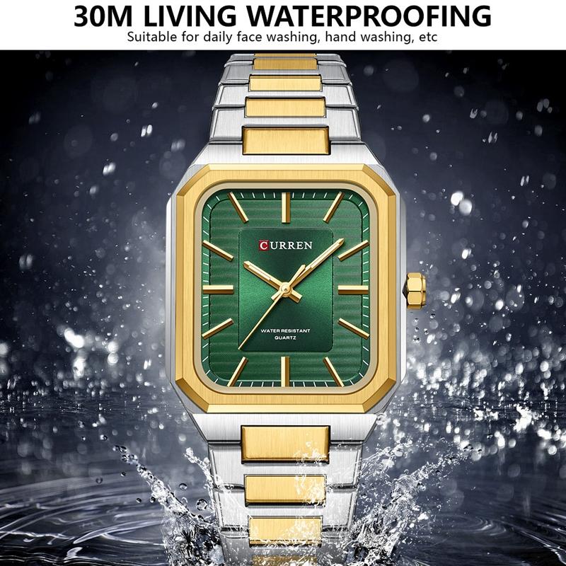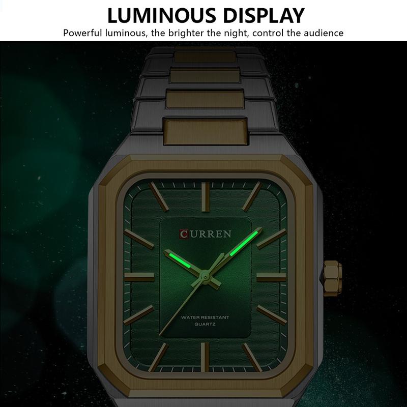 Square Steel Strap Men Quartz Watch – Business Style – Gold Green