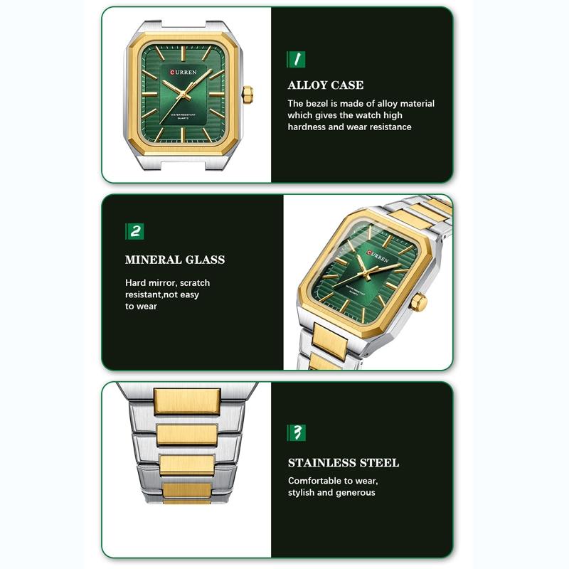 Square Steel Strap Men Quartz Watch – Business Style – Golden White