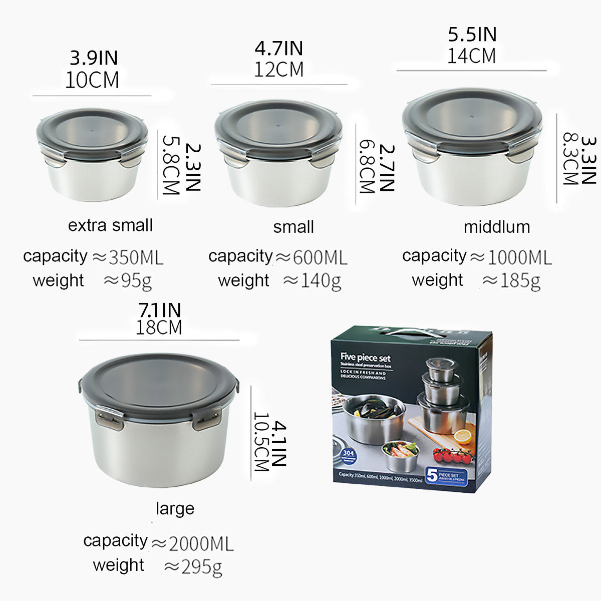 Stainless Steel Box Set 4pcs Sealed Lunch Food Container Refrigerator Use
