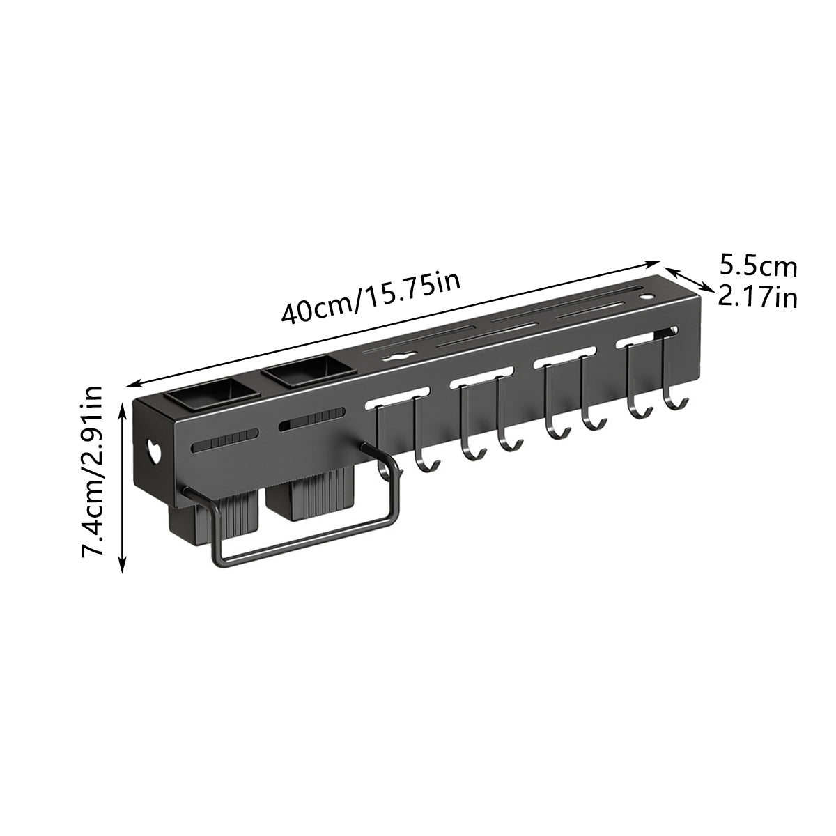 Keep your kitchen tidy and efficient with this wall-mounted utensil rack, designed for storing knives, chopsticks, and cooking tools.Constructed from durable carbon steel with a modern black finish, it offers a rust-resistant solution that enhances both organisation and style.The punch-free adhesive design allows hassle-free installation, while the hollow base helps drain water quickly for improved hygiene.