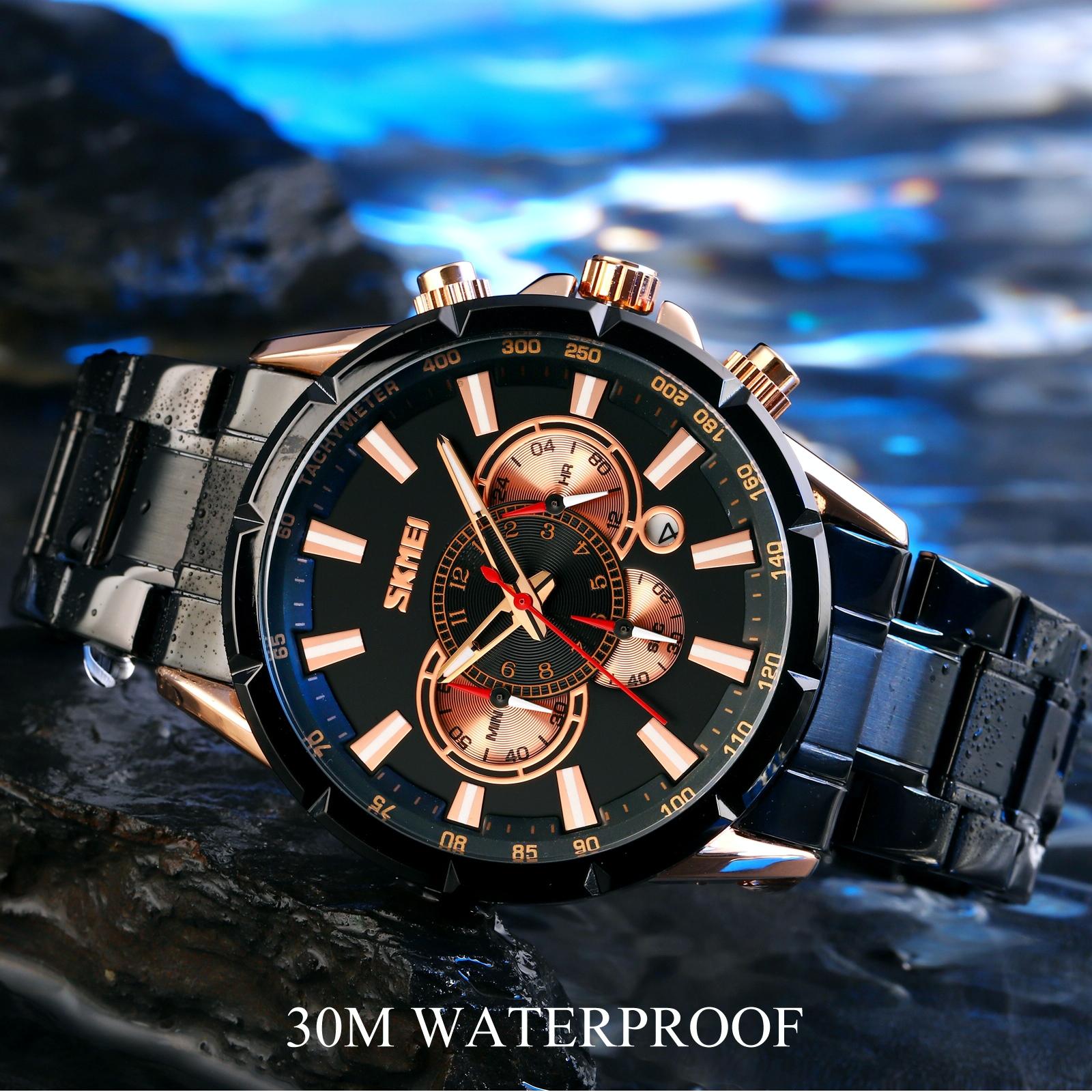 Stainless Steel Men Quartz Watch with Calendar – 9241 – Black Blue