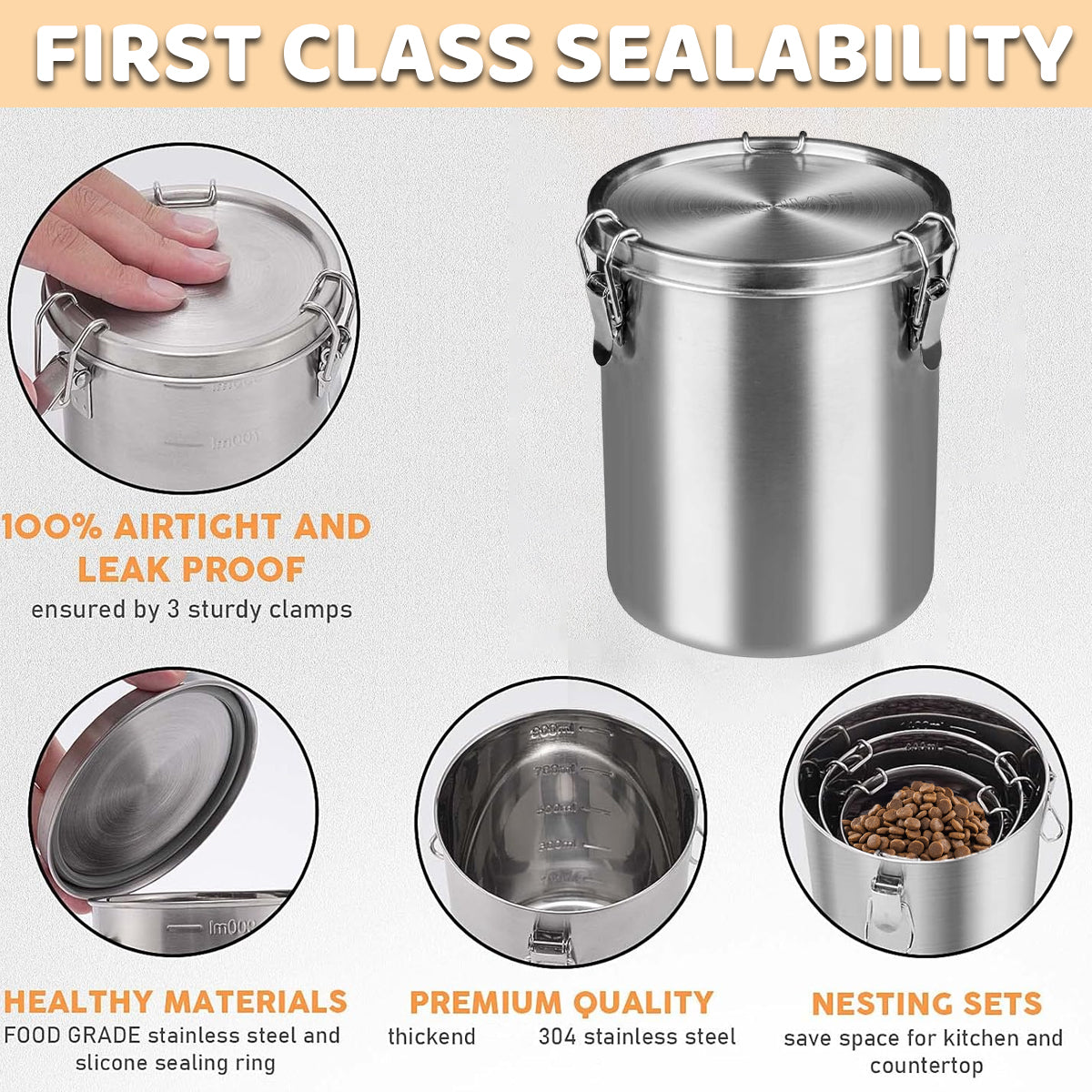 Seal: Silicone Ring + 3-Clip Locking Mechanism