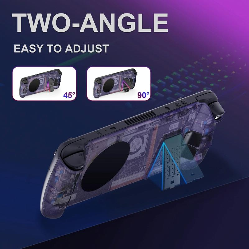 Steam Deck Gaming Console Case With Transparent Thermal Back And Bracket – Purple