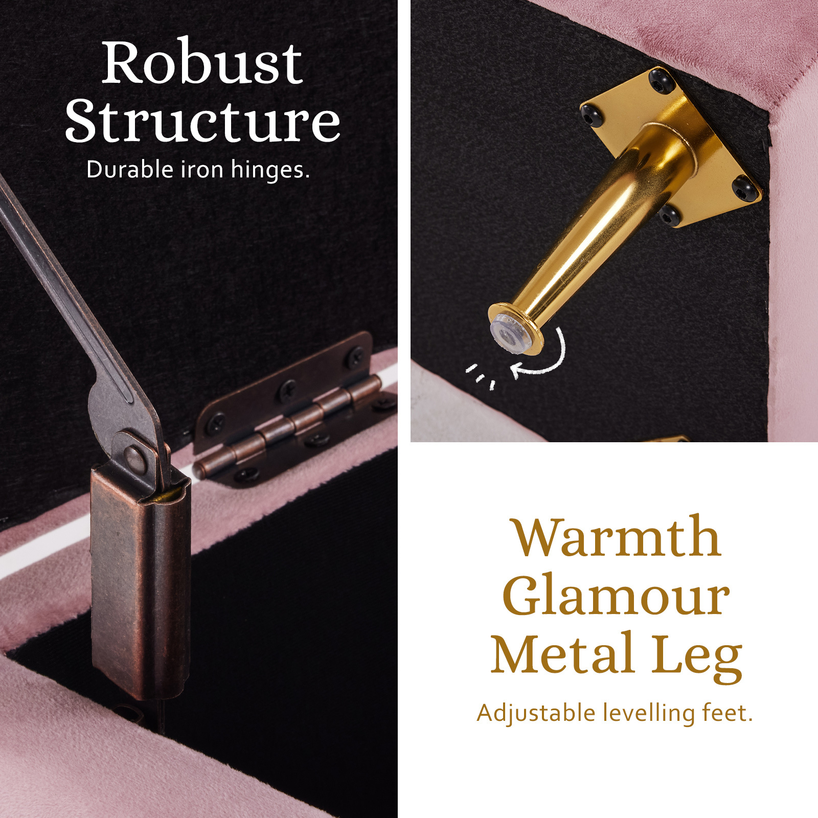 Storage Ottoman Stool Bench Seat 110cm Velvet PINK