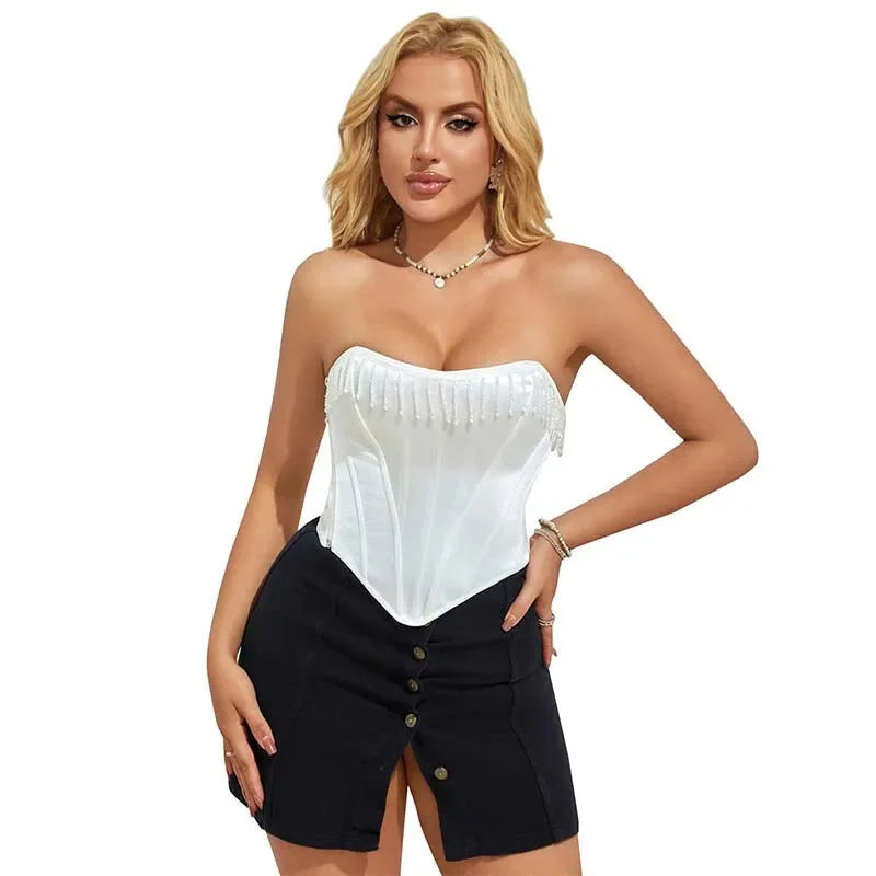 • 1 x Strapless Push-Up Wedding Bra White Bustier Vest With Zip