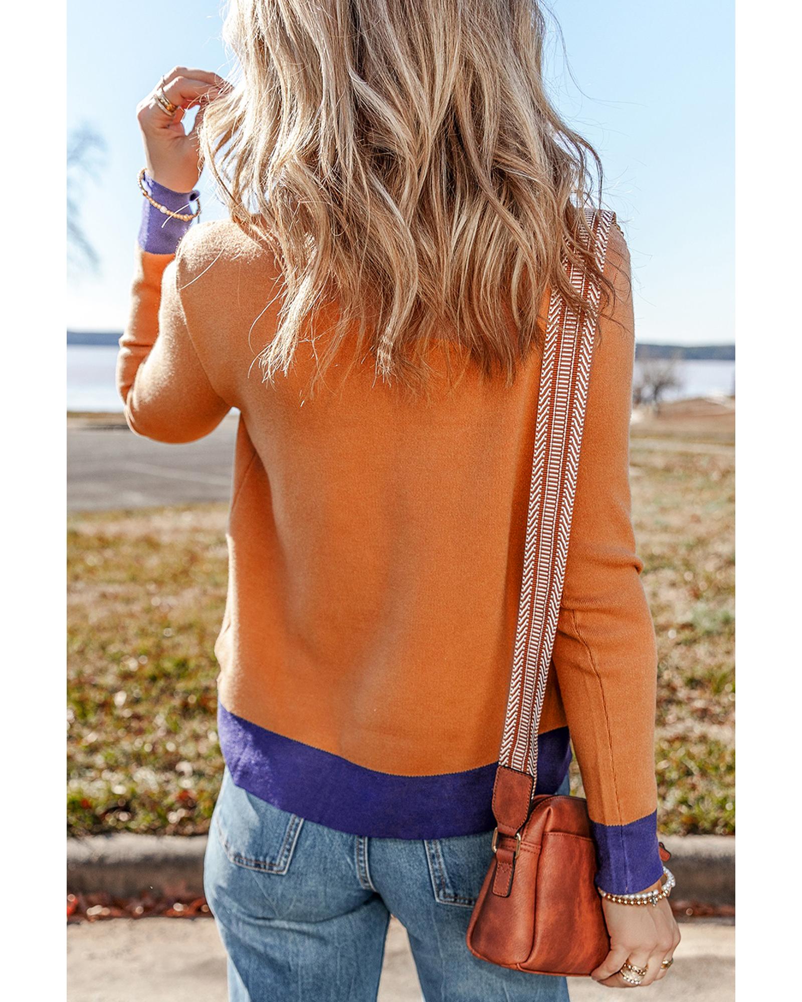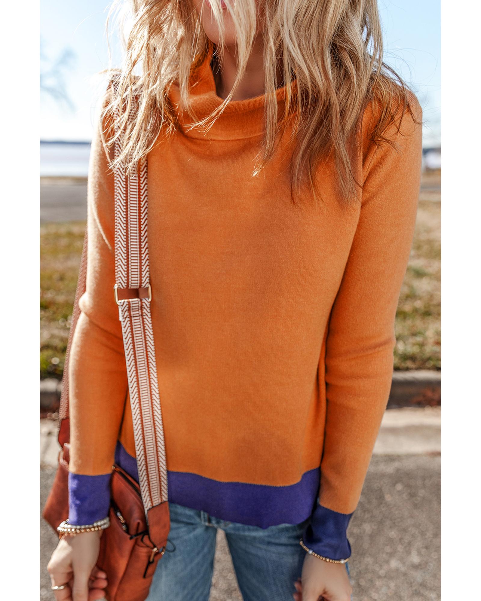 Straw Yellow Color Contrast Edge Mock Neck Slim Fit Sweater – S