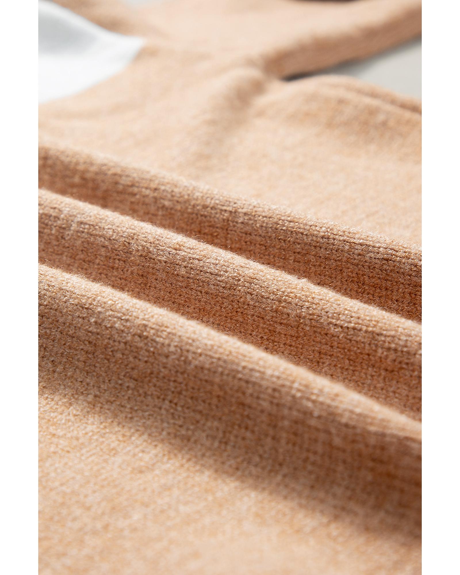 Straw Yellow Colorblock Ribbed Trim Round Neck Sweater – L