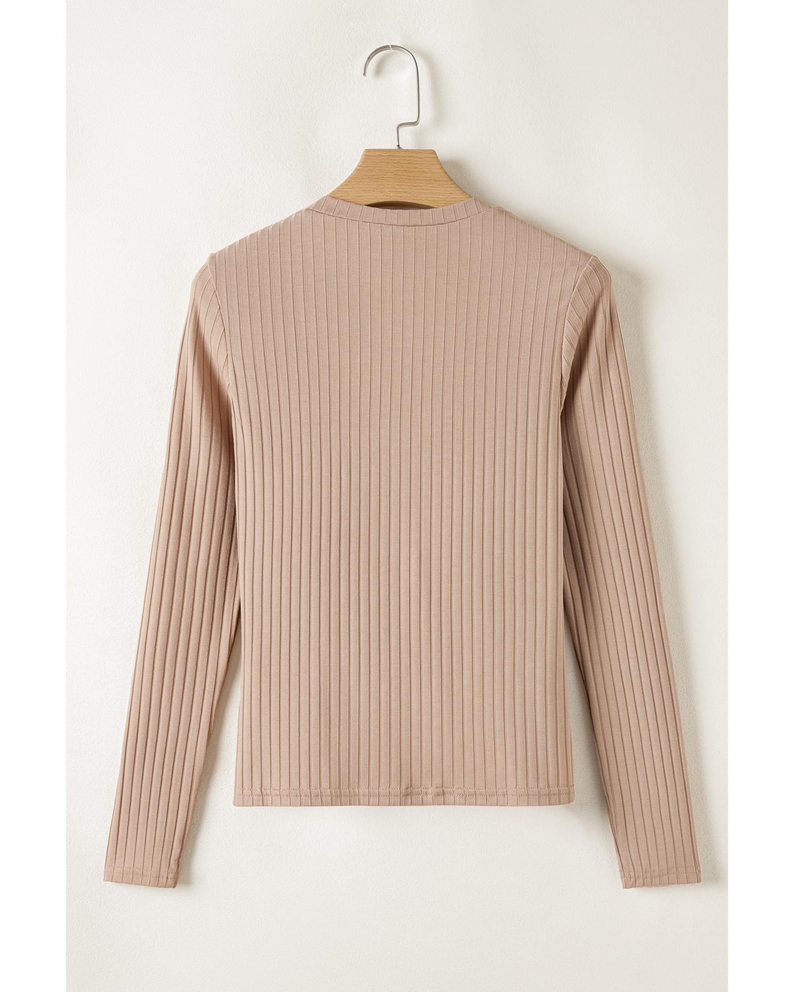 Straw Yellow Ribbed Knit V Neck Long Sleeve Slim Fit Top – L