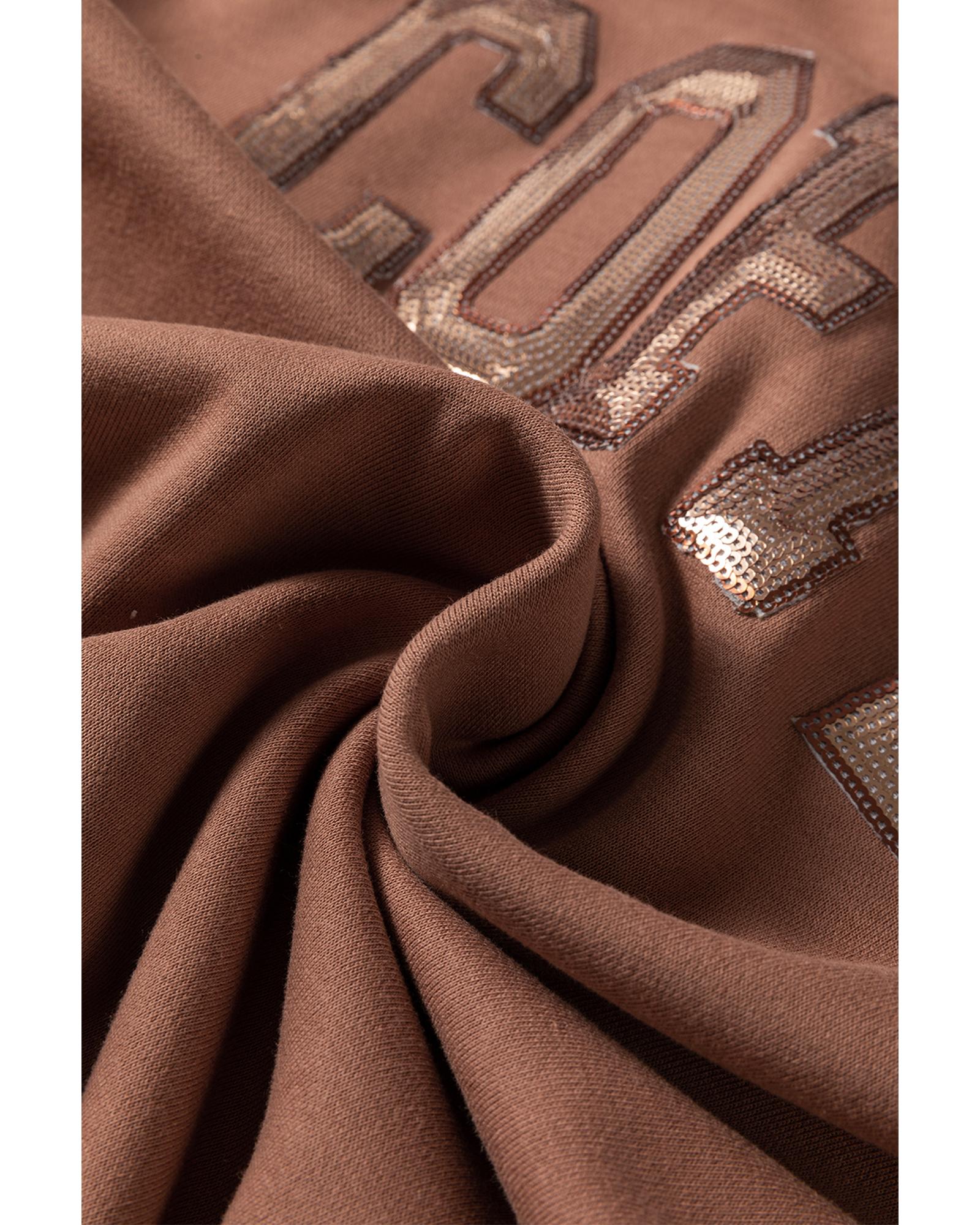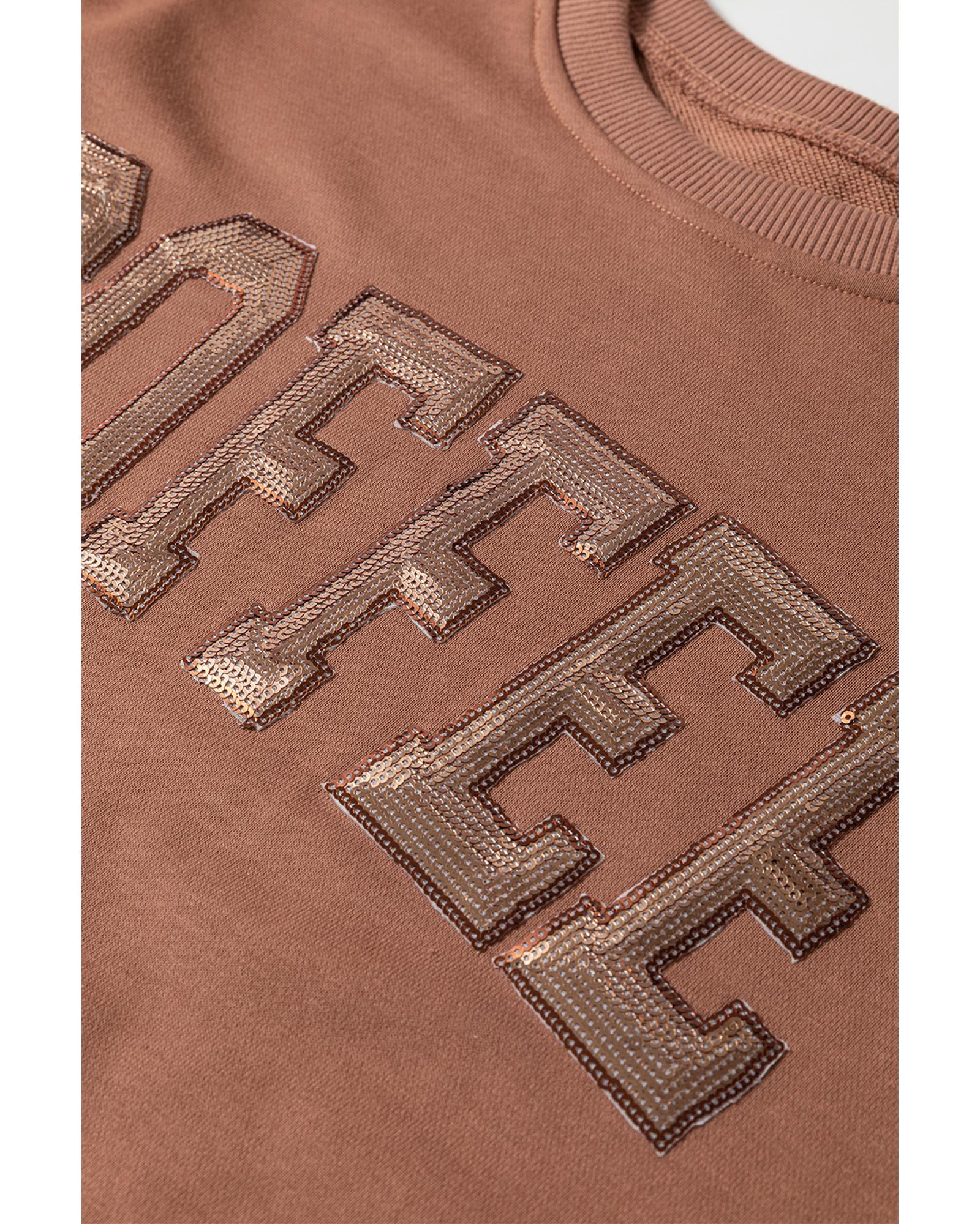 Straw Yellow Sequined COFFEE Loose Fit Sweatshirt and Shorts Set – S