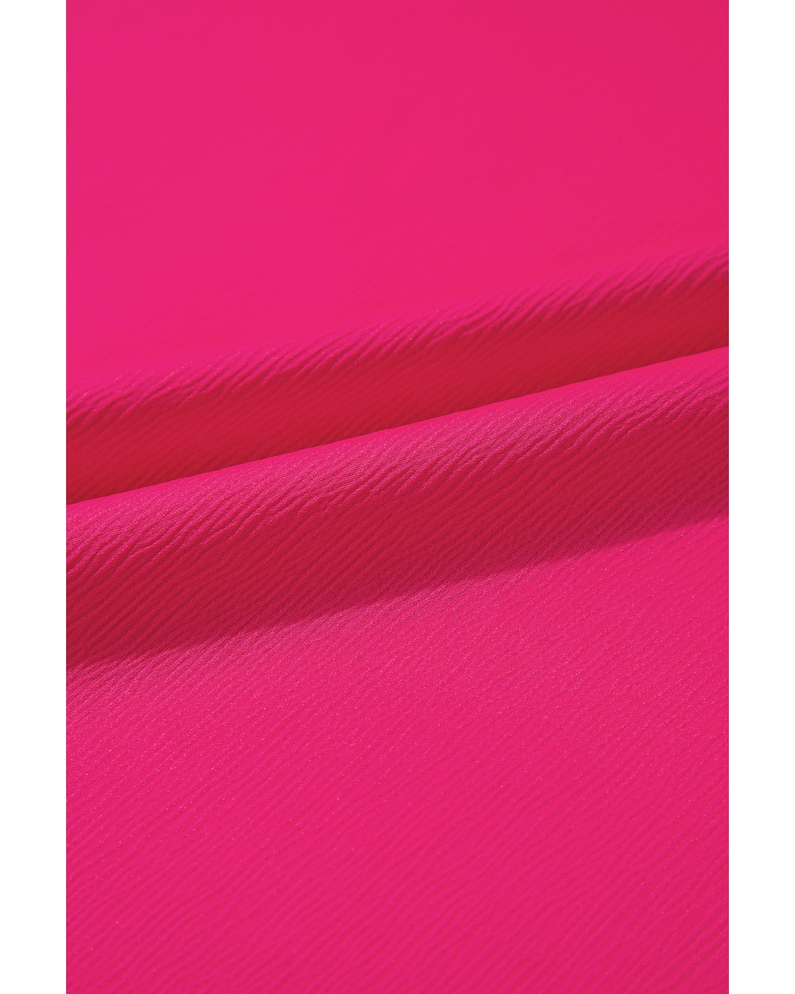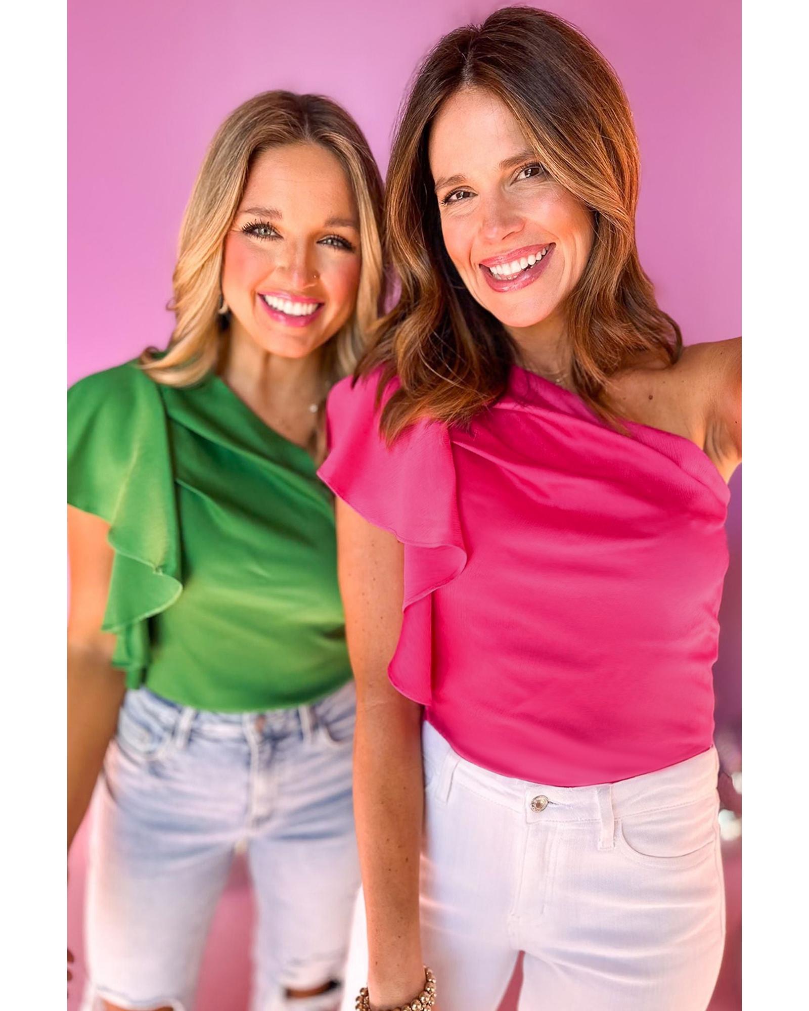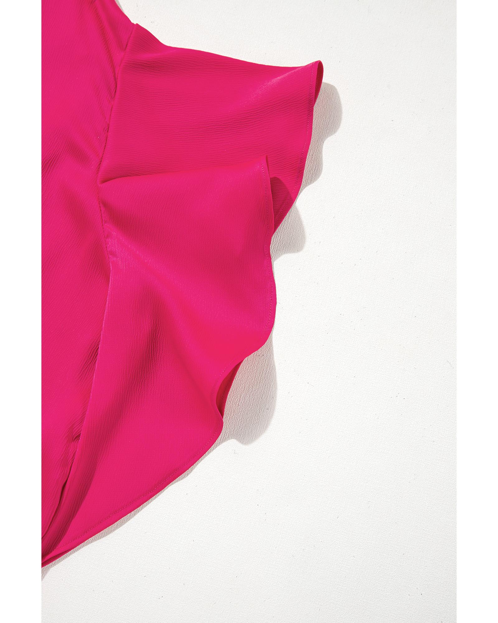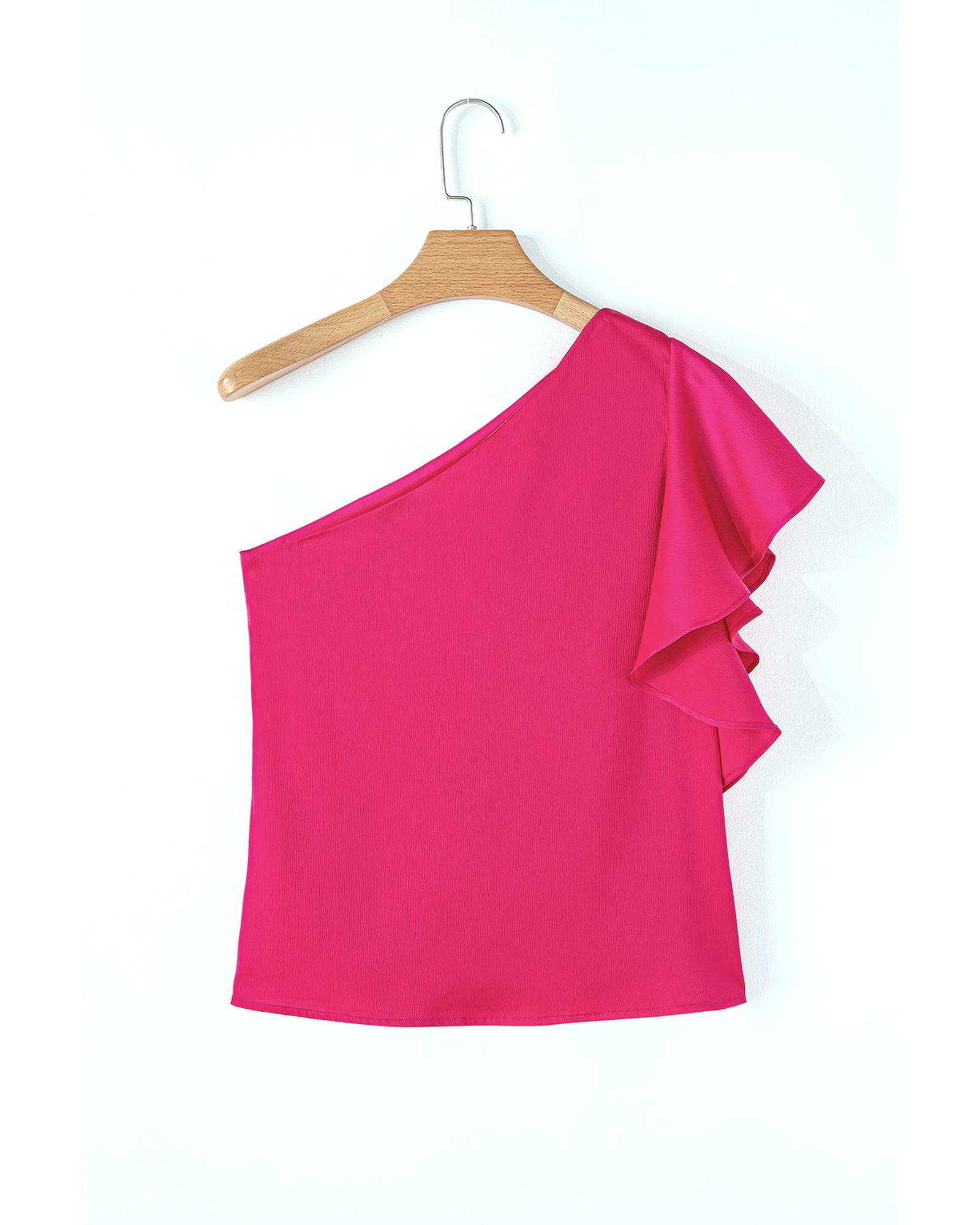 Strawberry Pink Asymmetric Shoulder Ruffle Sleeve Elegant Blouse – XL
