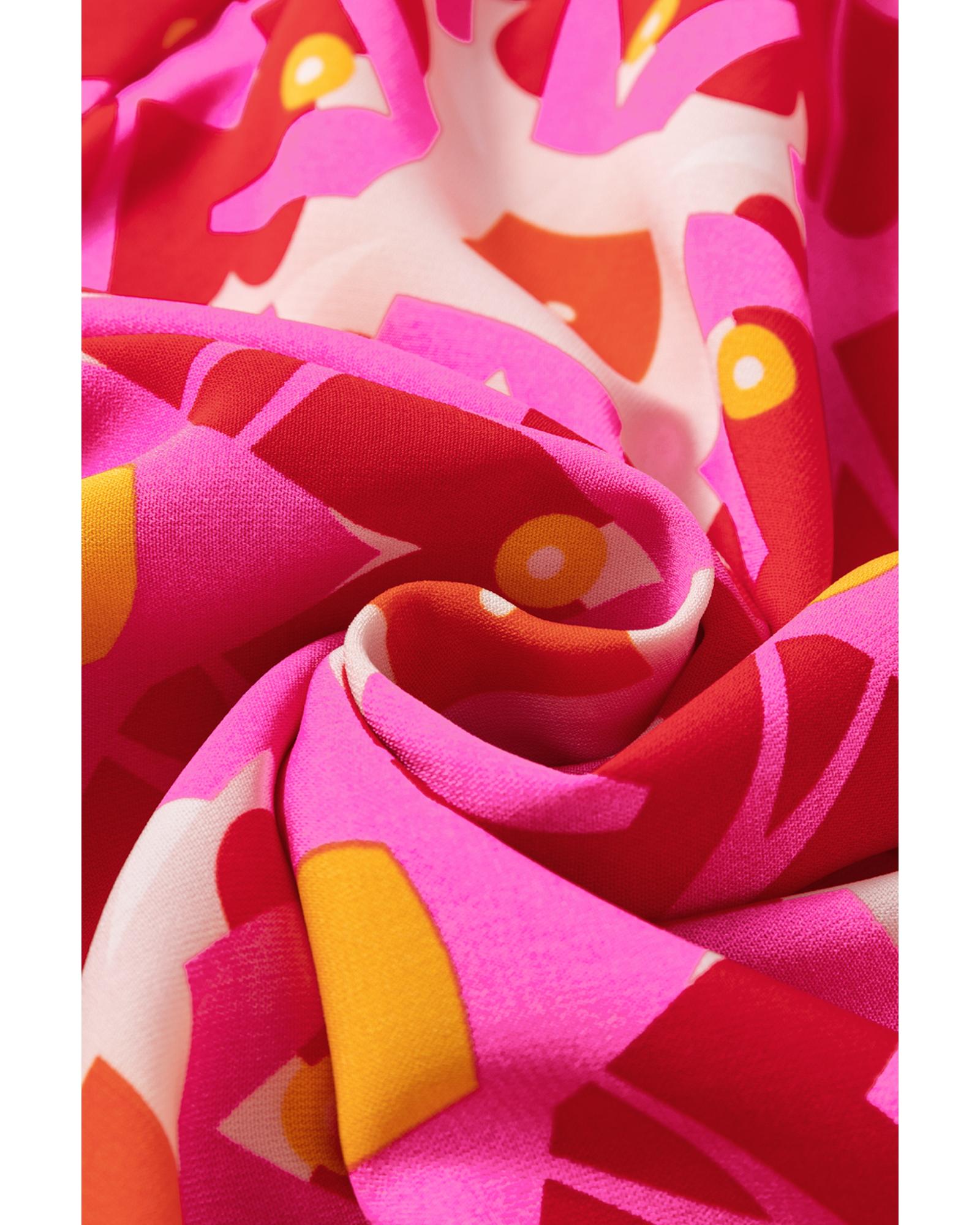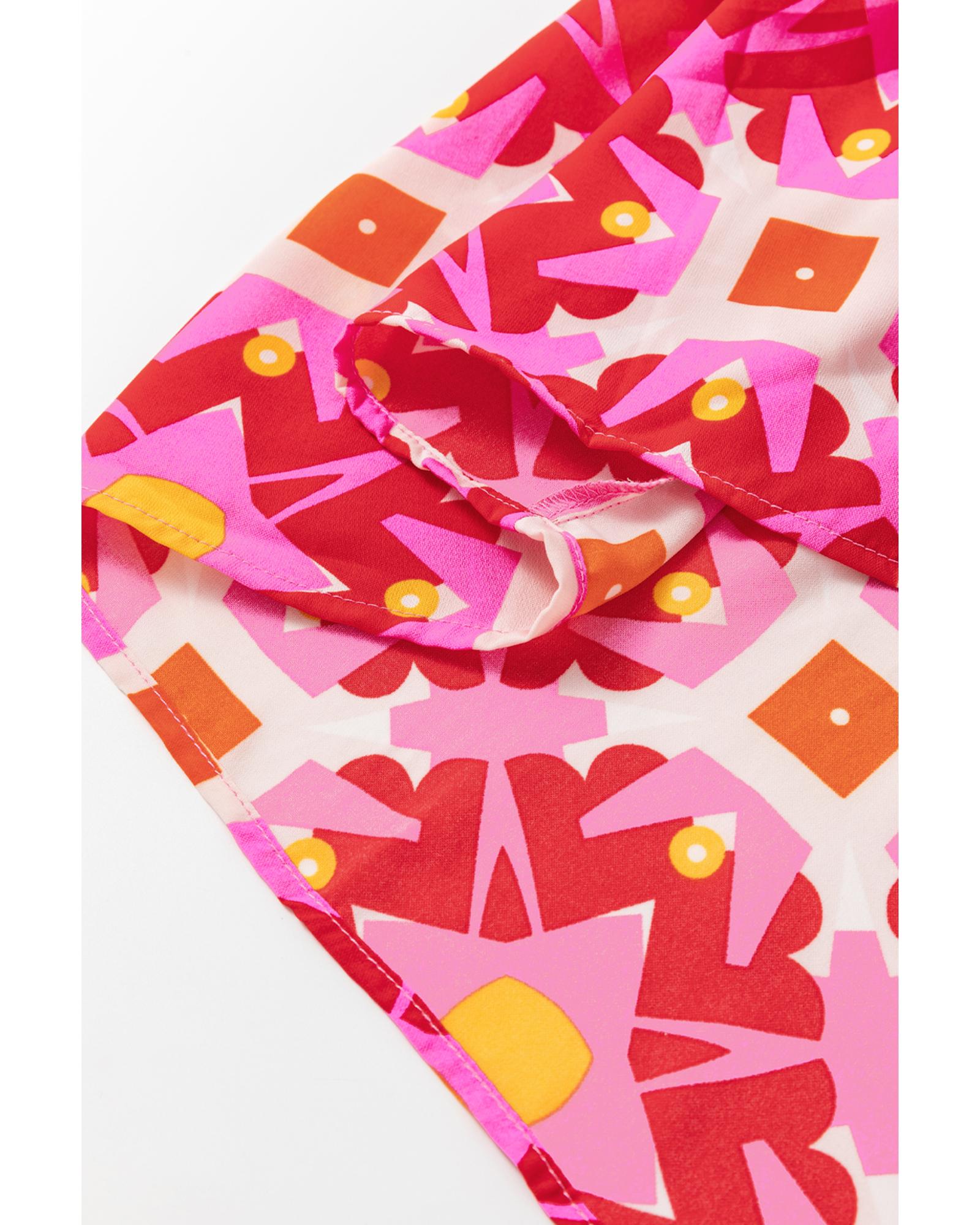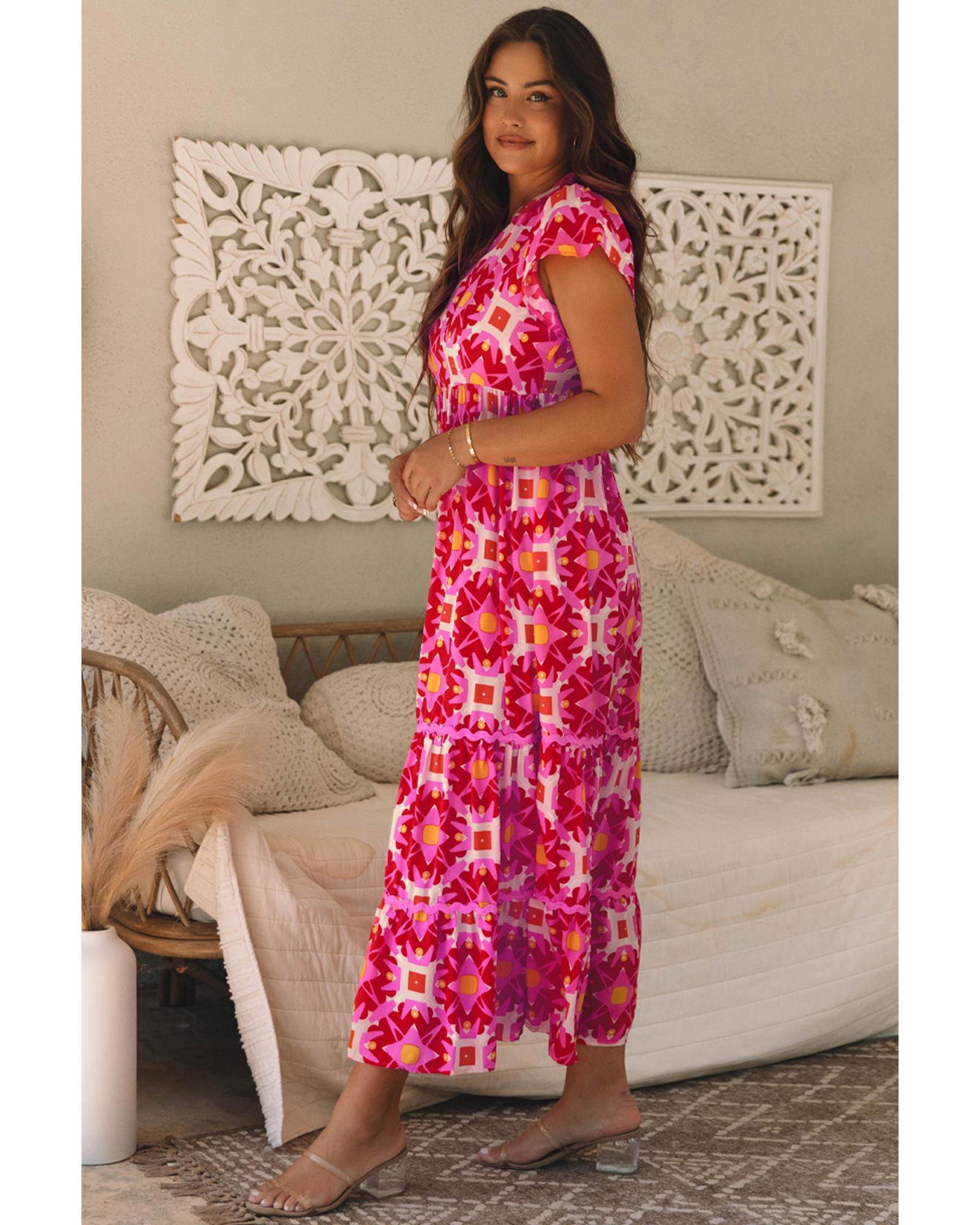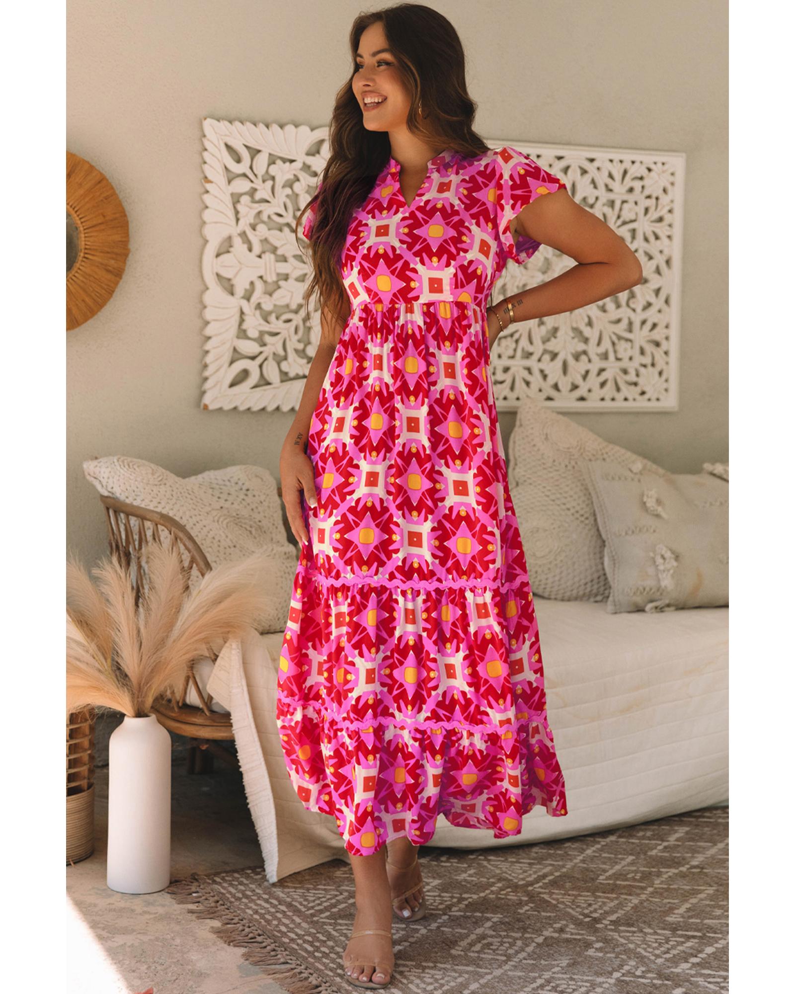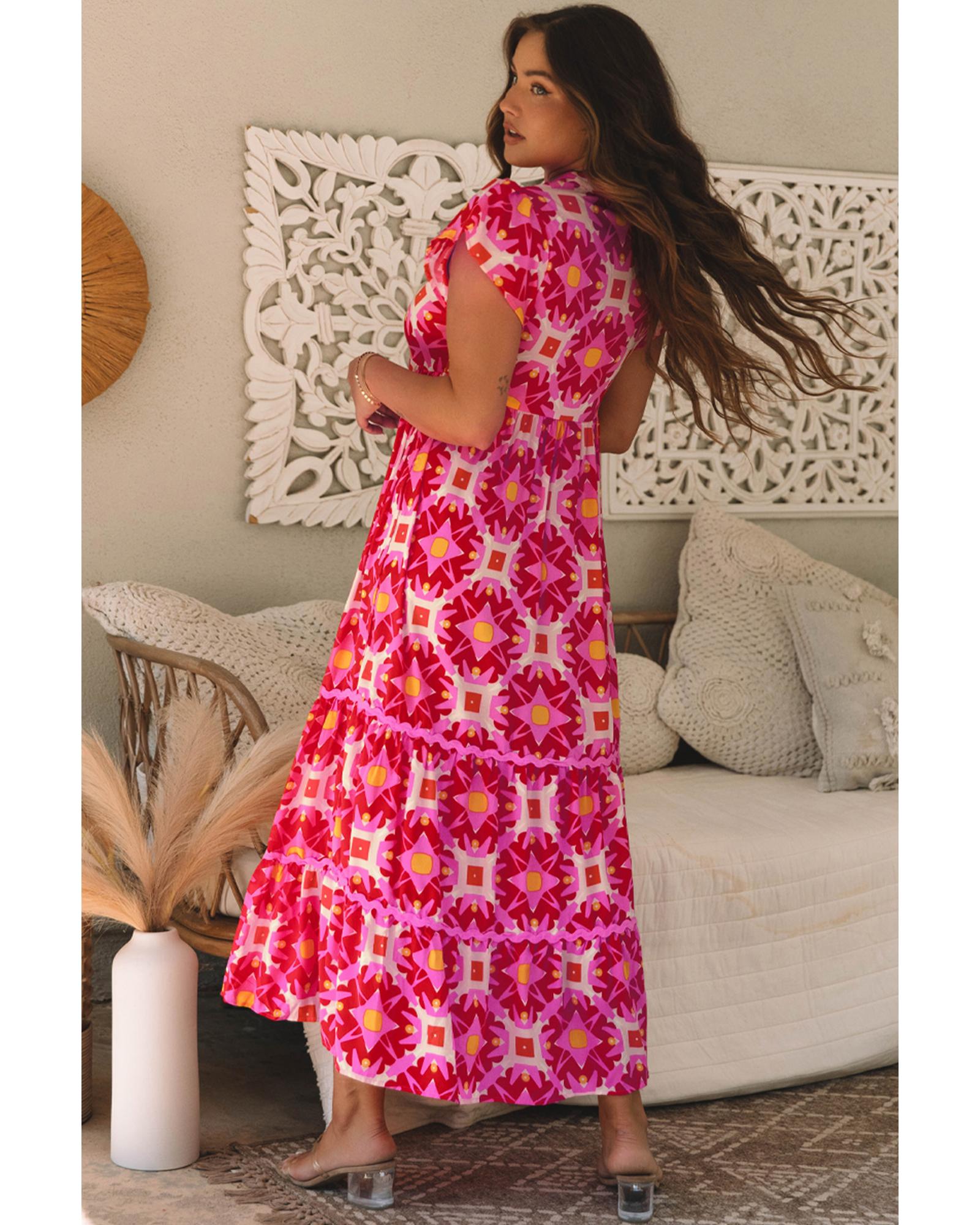 Strawberry Pink Geo Print V-neck Maxi Dress – S
