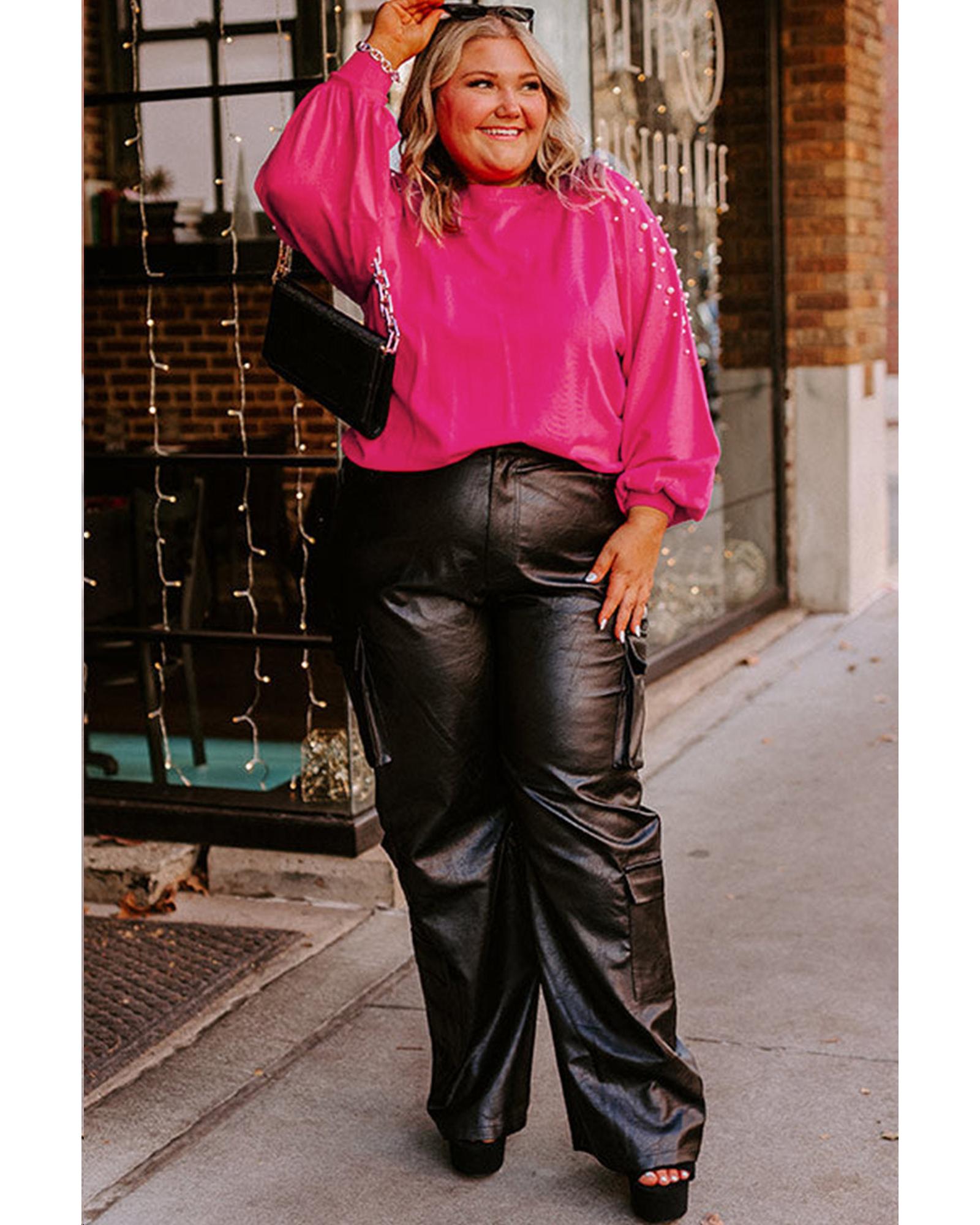 - Strawberry Pink Pearled Decor Raglan Sleeve Plus Size Sweater