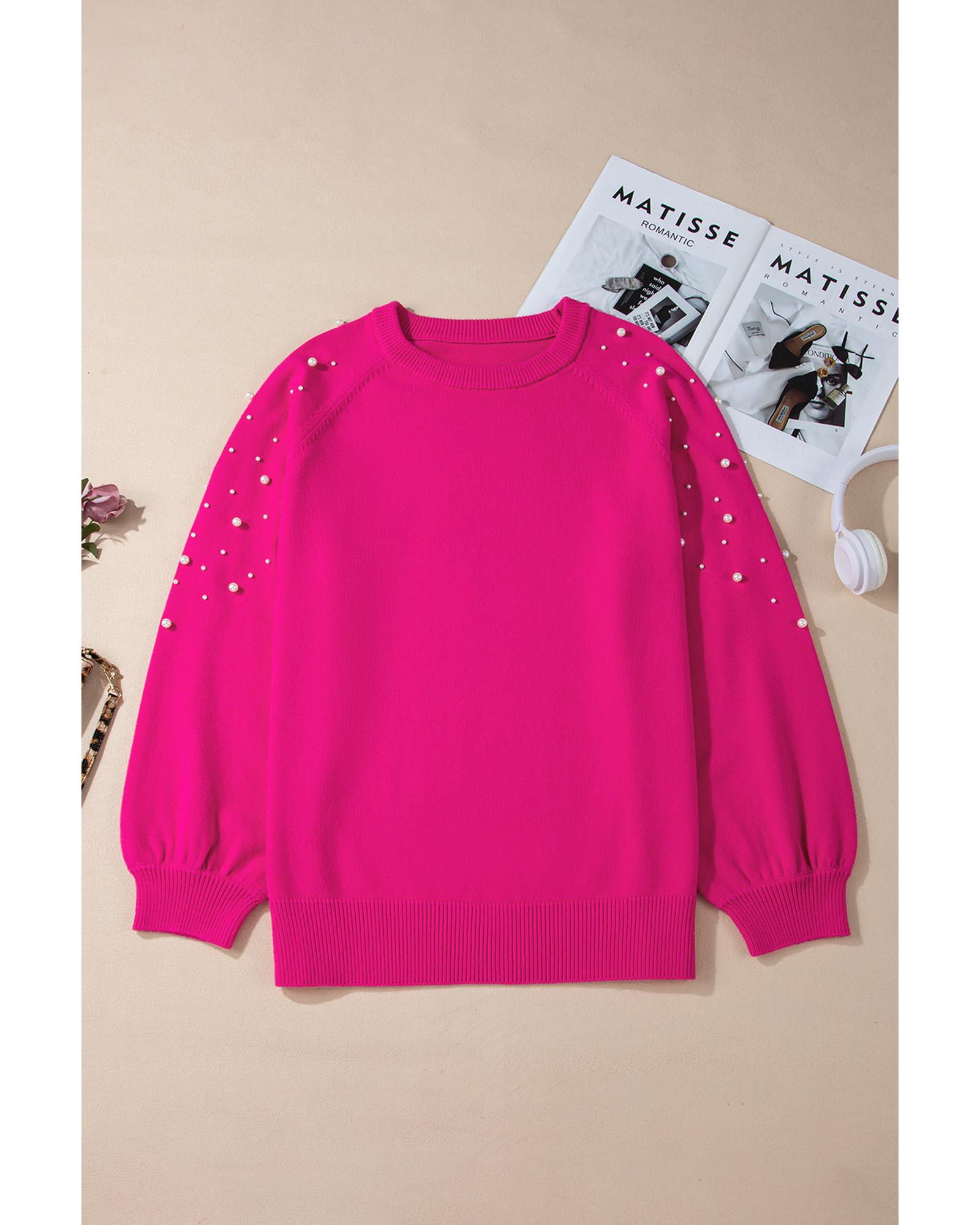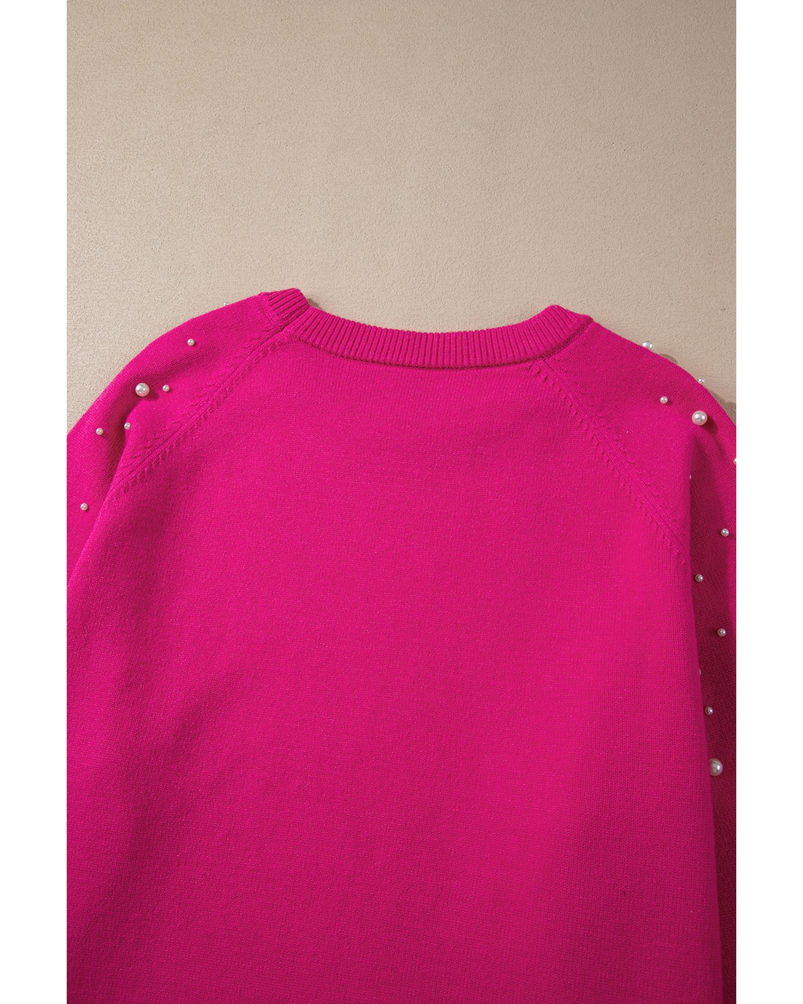 Strawberry Pink Pearled Decor Raglan Sleeve Plus Size Sweater – 4X
