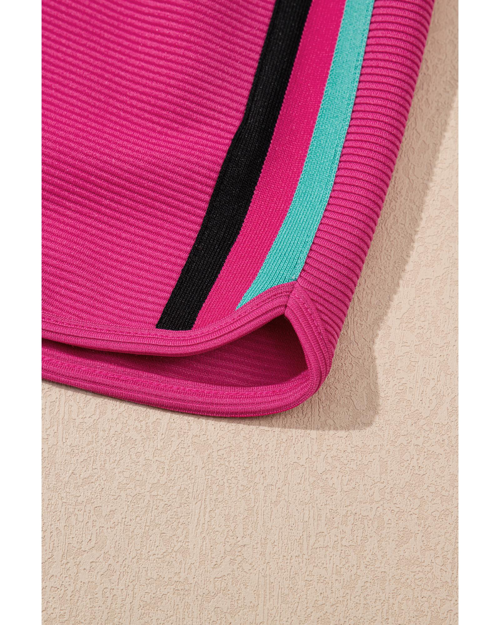 Strawberry Pink Striped Detail Flutter Sleeve Zipped Collar Short Set – XL