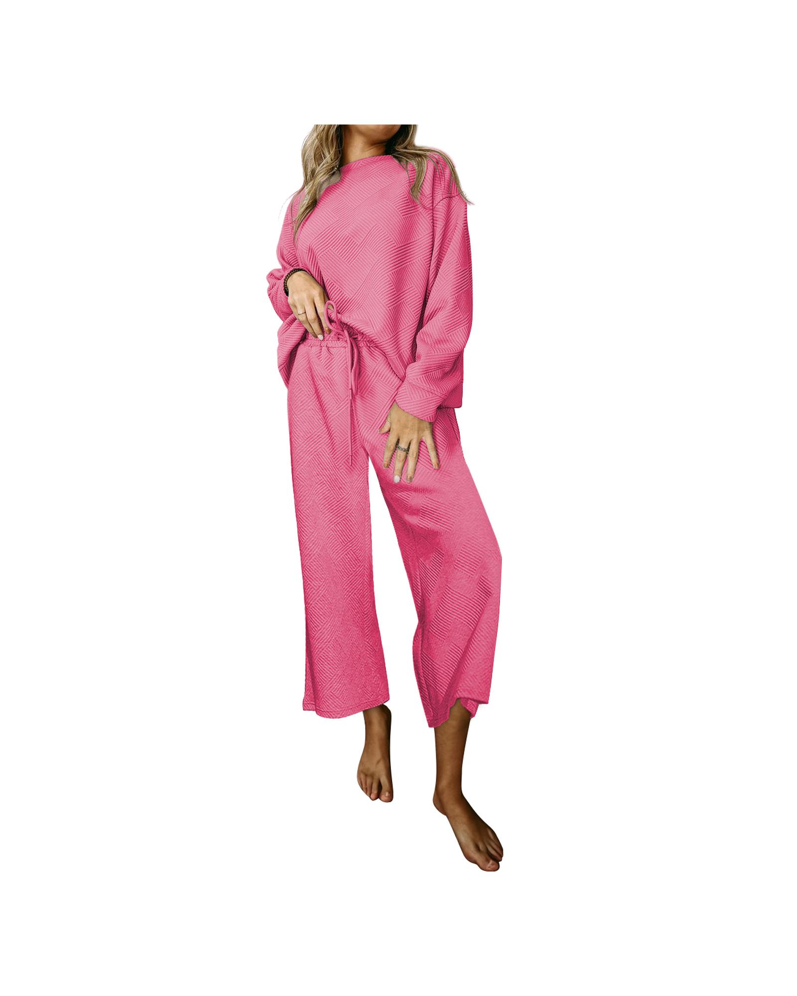 Strawberry Pink Ultra Loose Textured 2pcs Slouchy Outfit – S