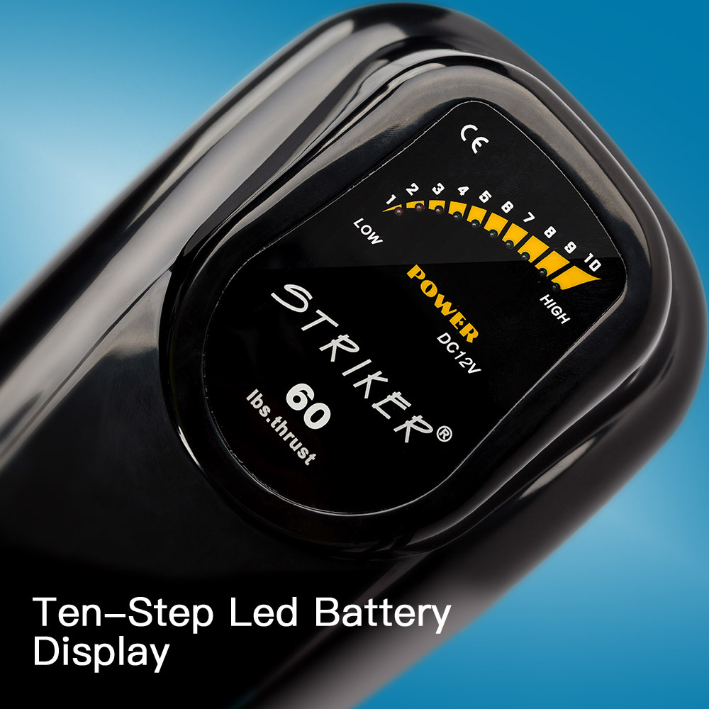 With super-low power consumption, the Genuine Striker gets the most out of your 12V battery. And thanks to its clear LED display, you will always be in control of the power. Suitable for small water crafts such as inflatable boats, canoes and aluminum fishing boats, refer to the below graph for boat size.Simply twist the handle and sneak up on the fish at the optimal speed. With five forward speeds and three reverse speeds, you’ll make the right approach every time.