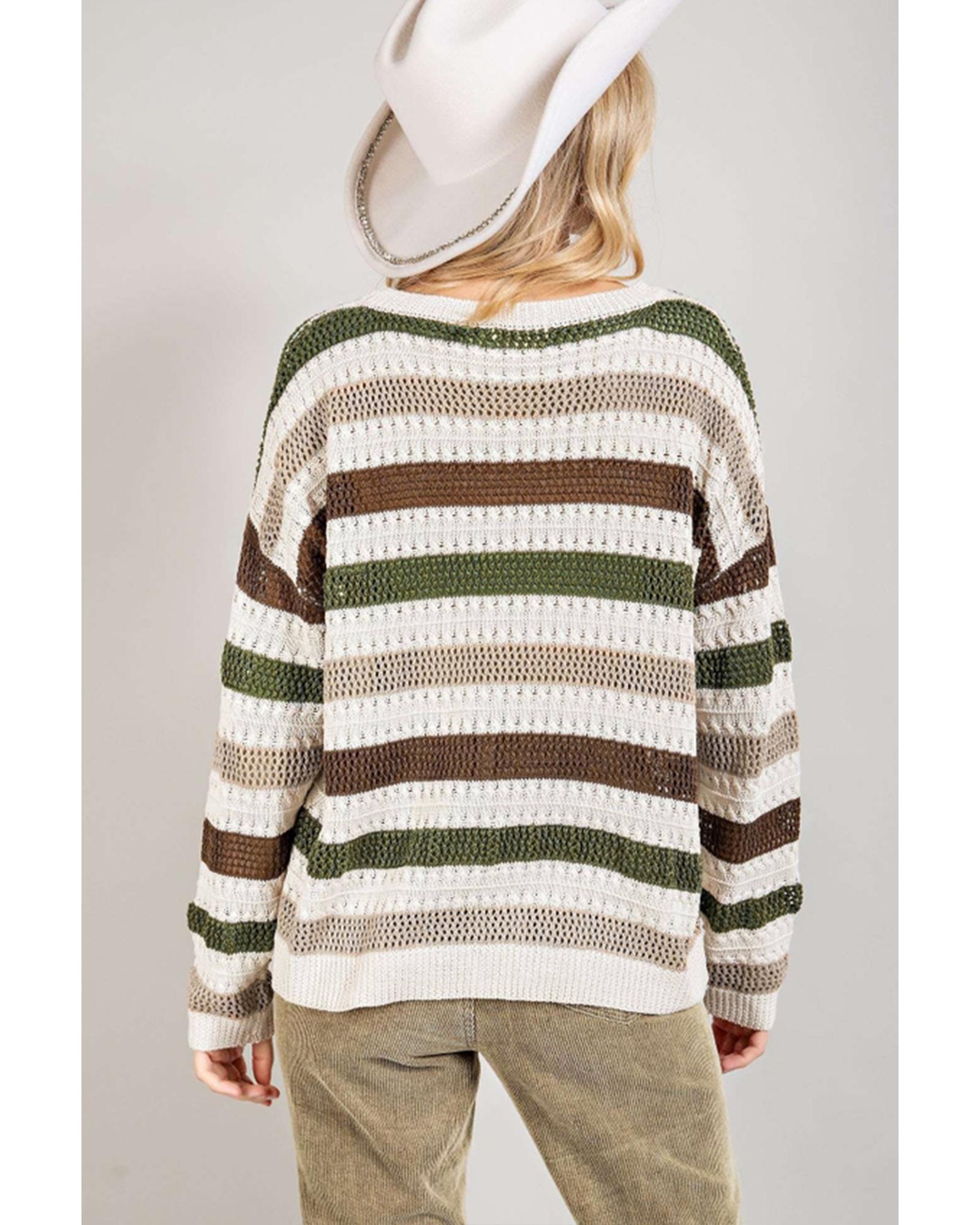 Orange Stripe Loose Color Block Drop Shoulder Bubble Sleeve Sweater - XL