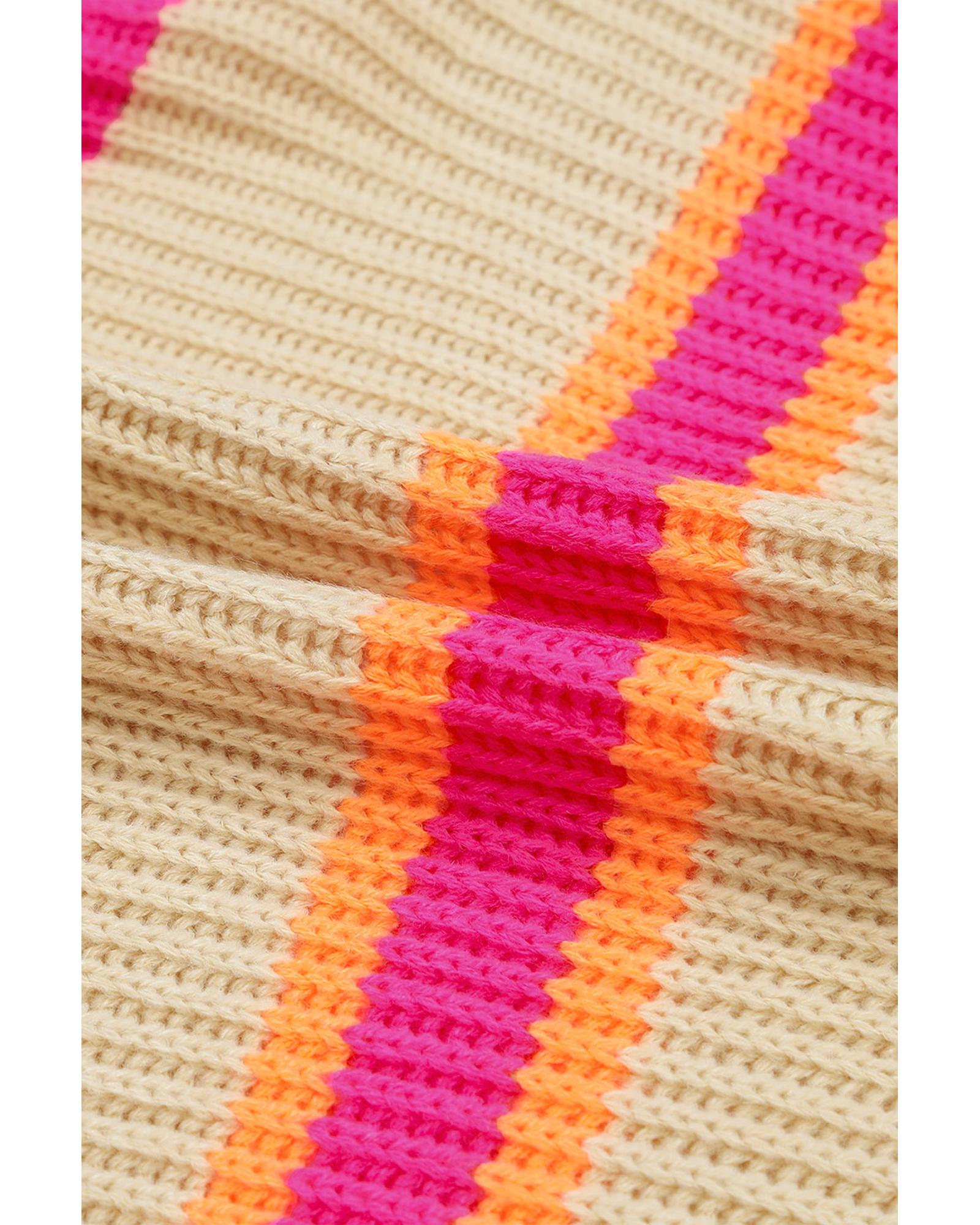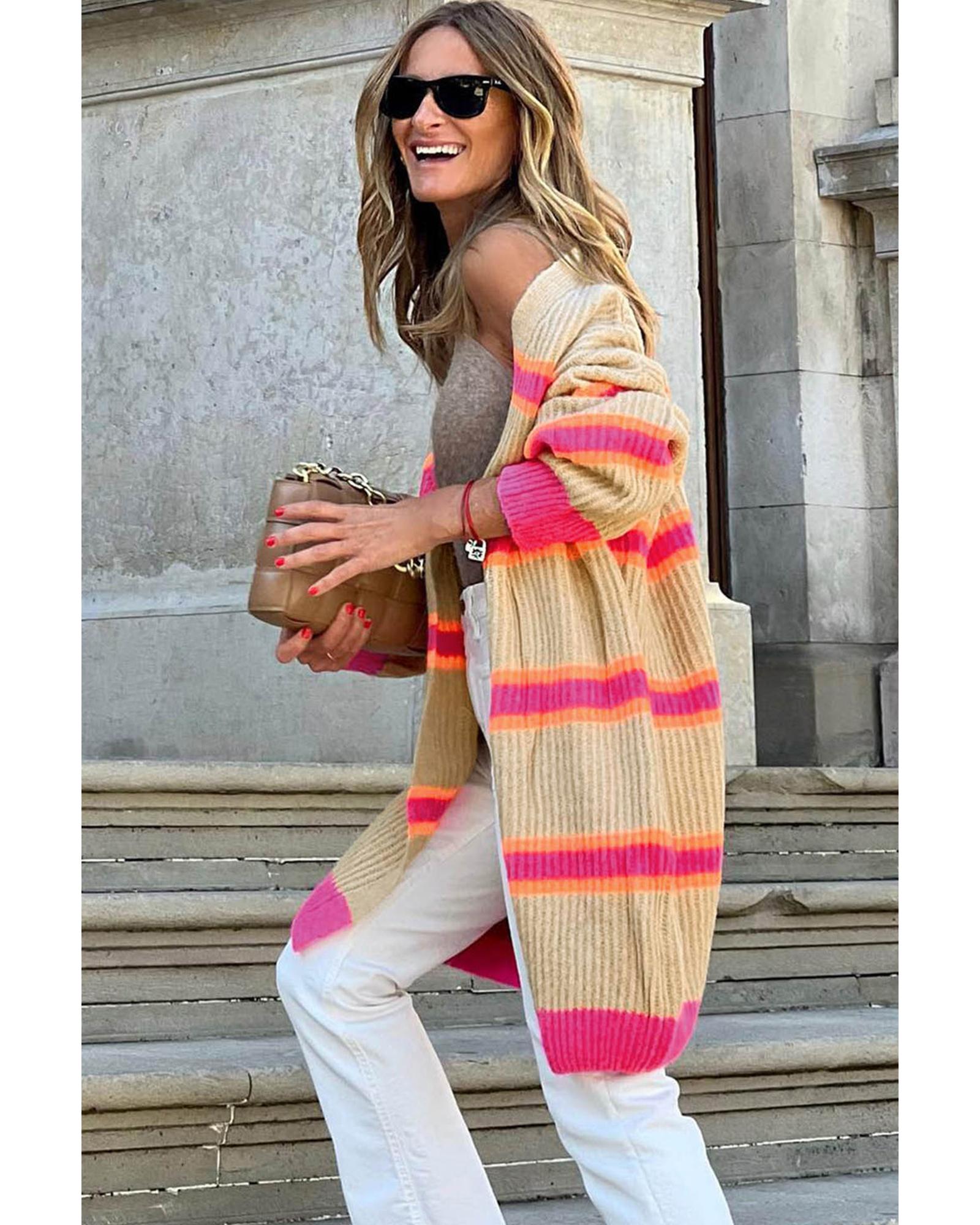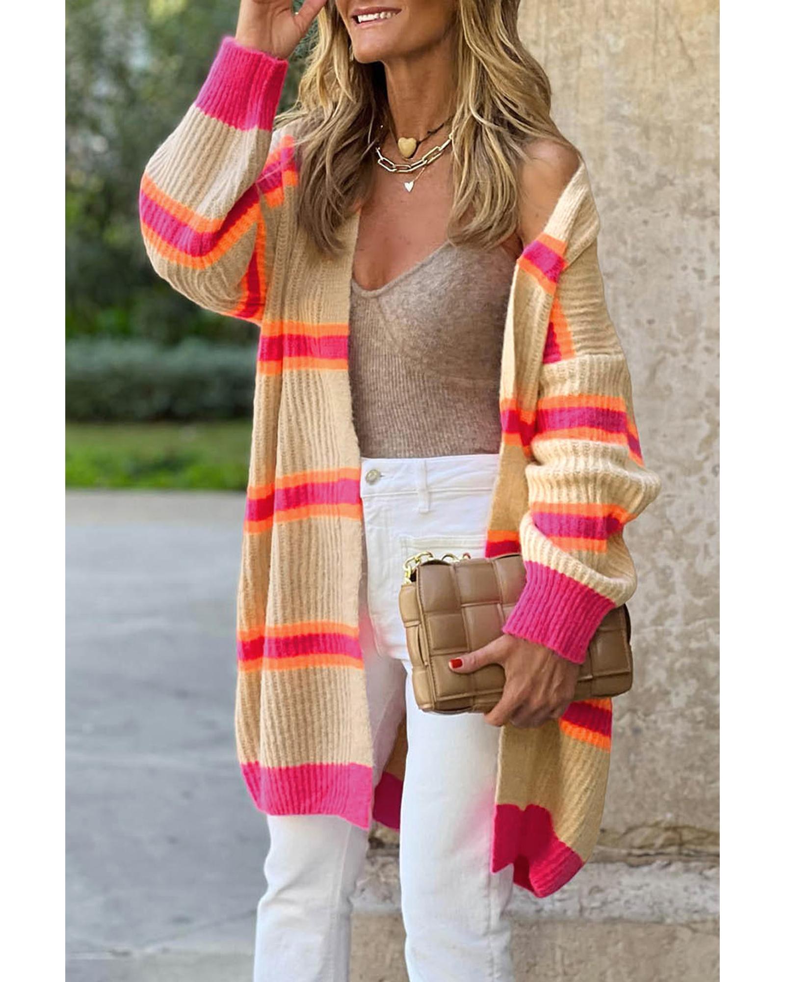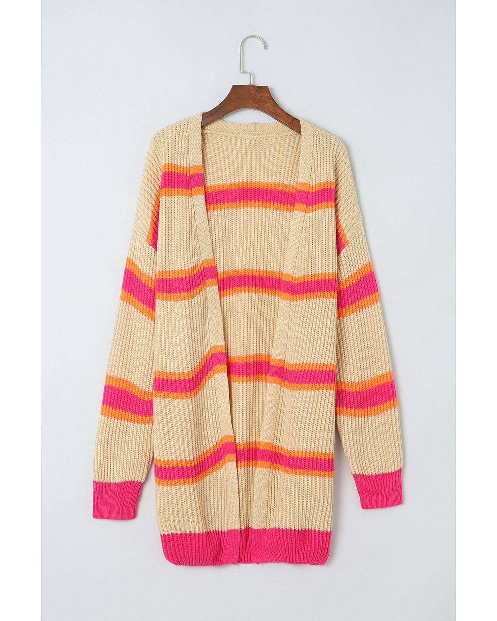 Stripe Printed Ribbed Long Knitted Cardigan – L